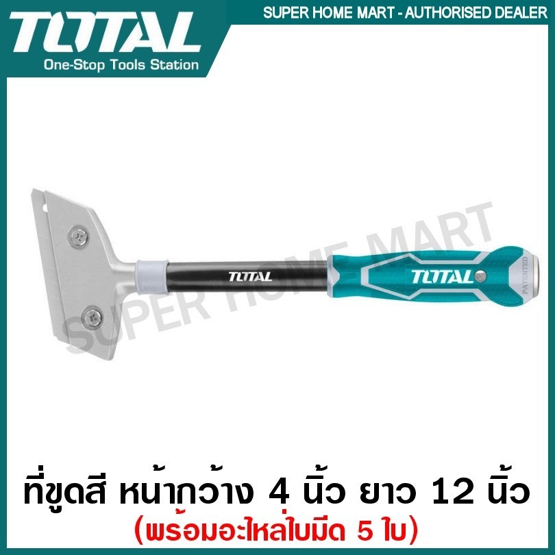 Total เหล็กขูดสี ที่ขูดสี พร้อมใบมีด หน้ากว้าง 4 นิ้ว รุ่น THT183006 / THT183201 / TGS3088 ( Metal Scraper ) - ที่ลอกสี