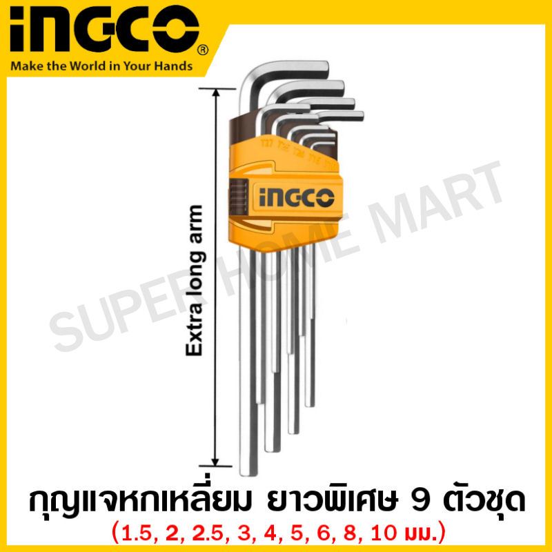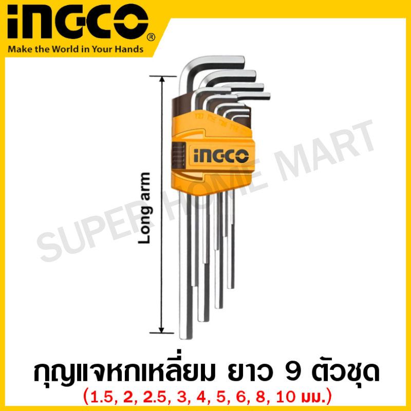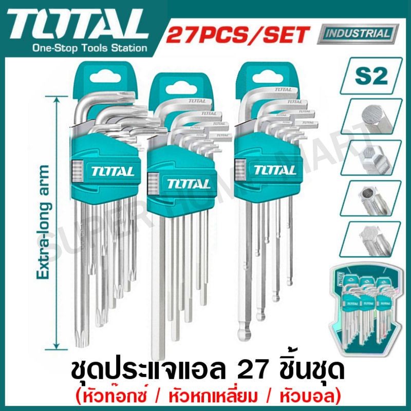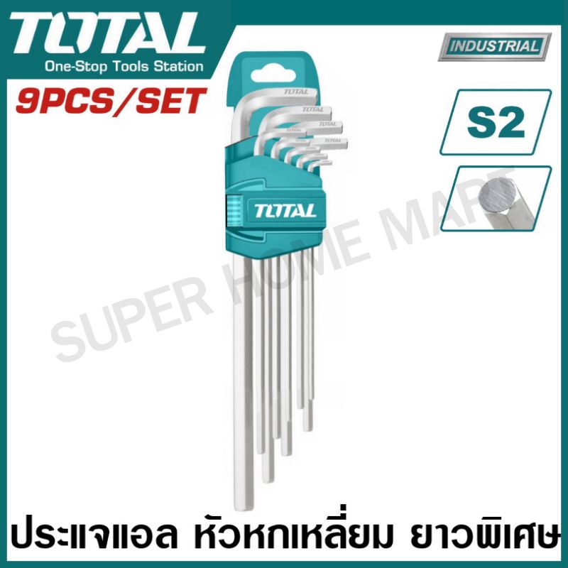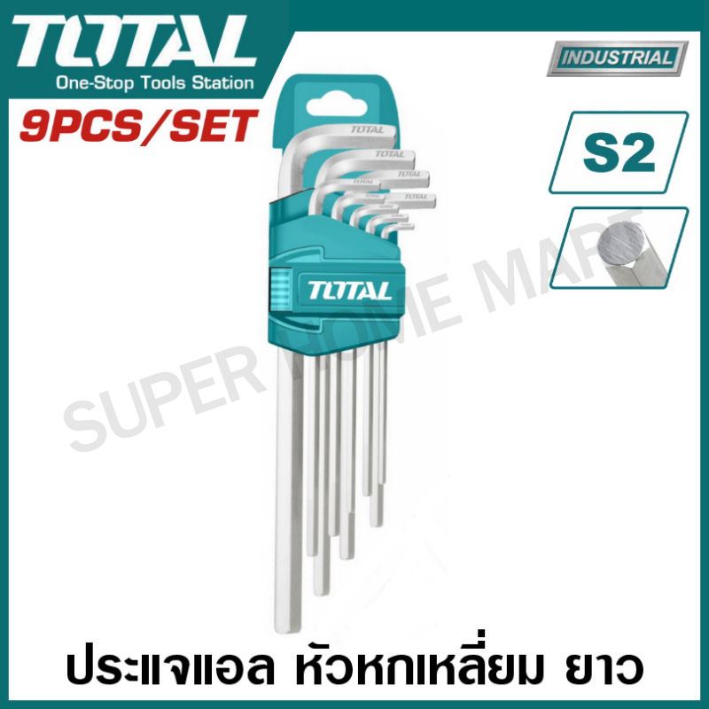 Total กุญแจหกเหลี่ยม 9 ตัวชุด ยาว รุ่น THT106191 / ยาวพิเศษ รุ่น THT106192 ( Hex Key Wrench )