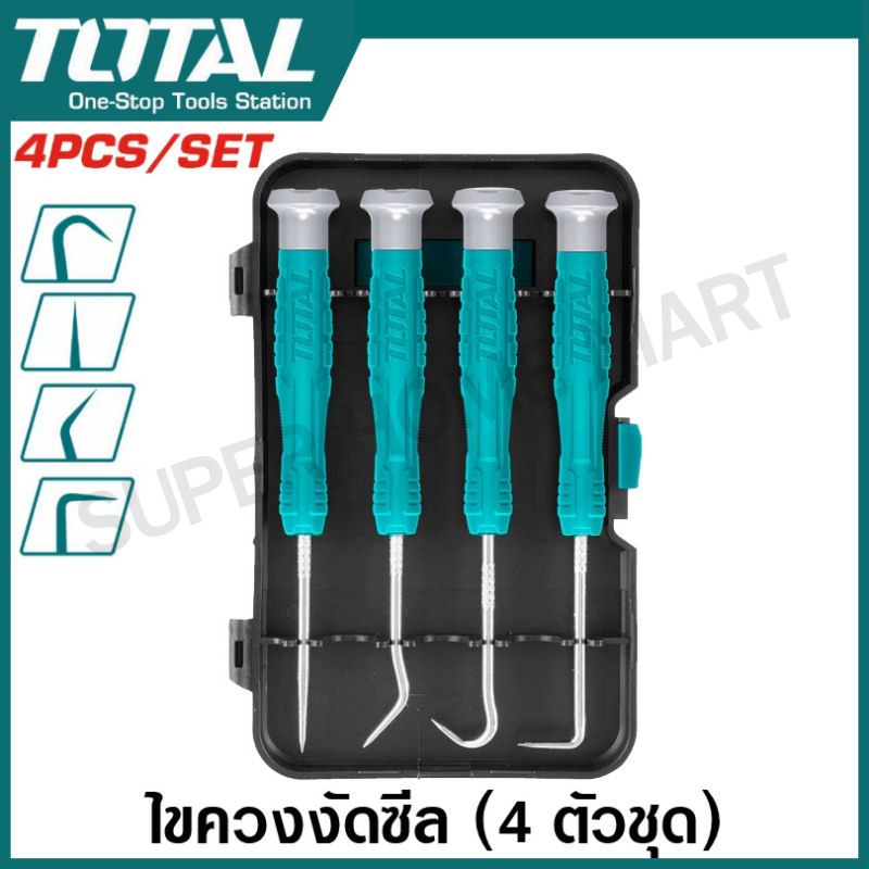 Total ไขควงงัดซีลยาง ปลายแหลม 4 ตัวชุด รุ่น TPHSK0401 ( 4 pcs Pick and Hook Set ) ที่งัดซีล เหล็กงัดซีล ไขควงปลายแหลม