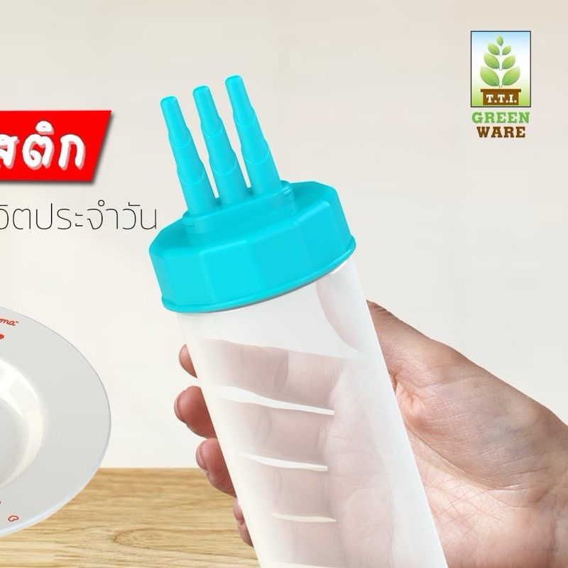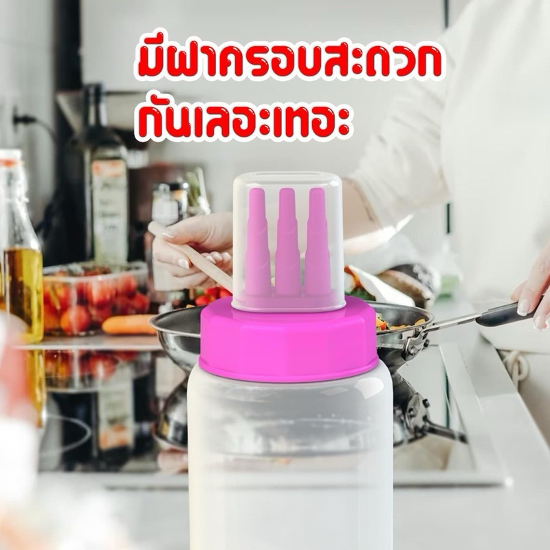 (1 โหล) ขวดซอส 3รู ใหญ่ (750ml.) มีฝาปิด พลาสติกคุณภาพดี
