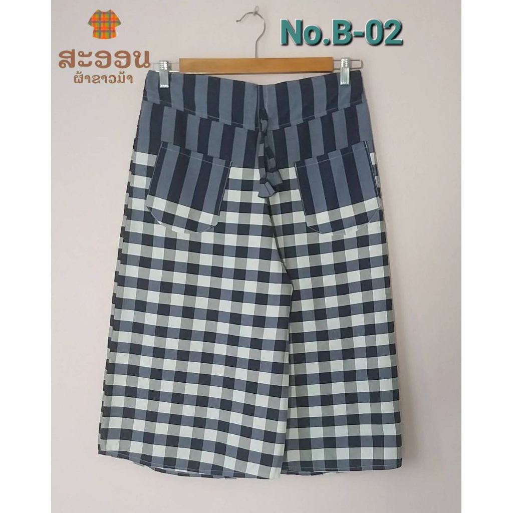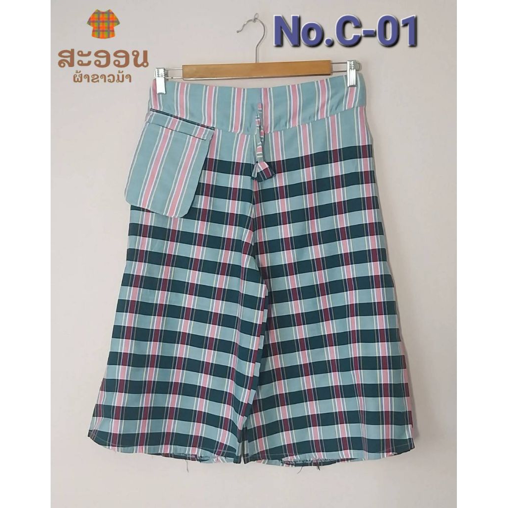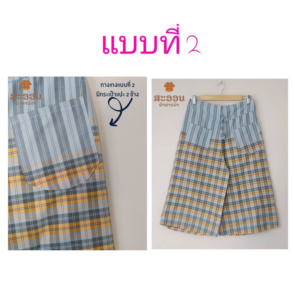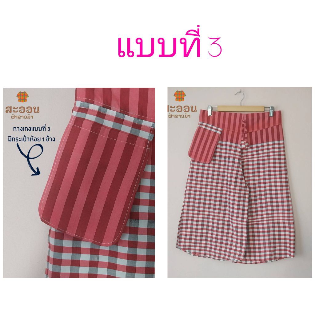 กางเกงผ้าขาวม้าห้าส่วน มีกระเป๋า 3 แบบ