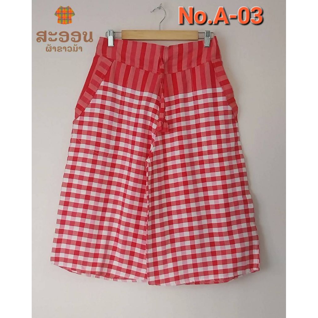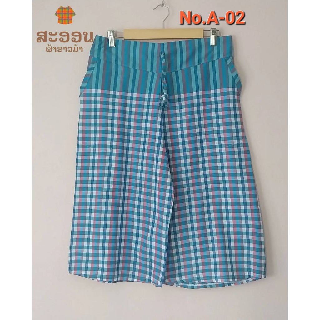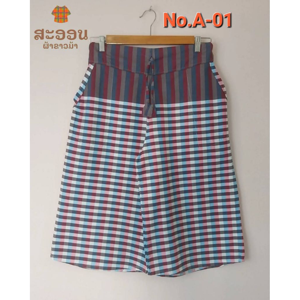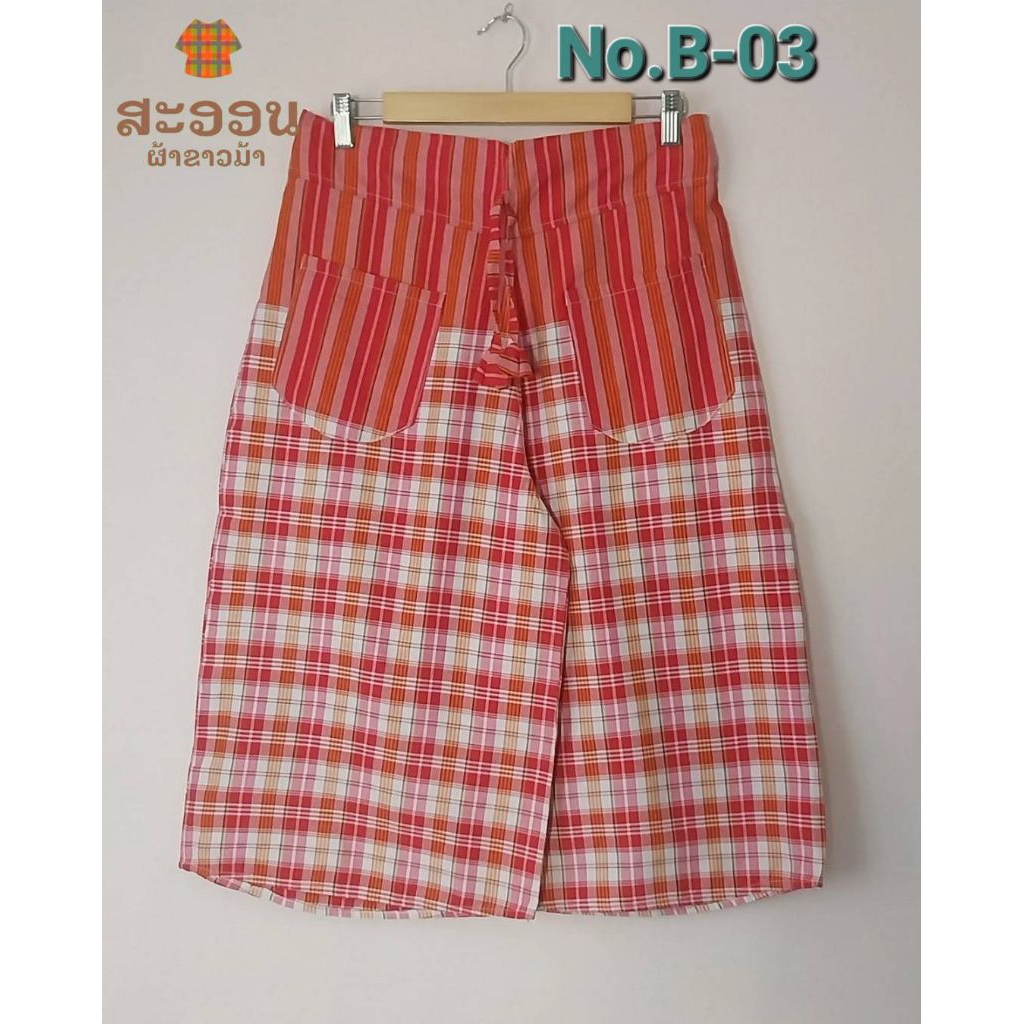 กางเกงผ้าขาวม้าห้าส่วน มีกระเป๋า 3 แบบ