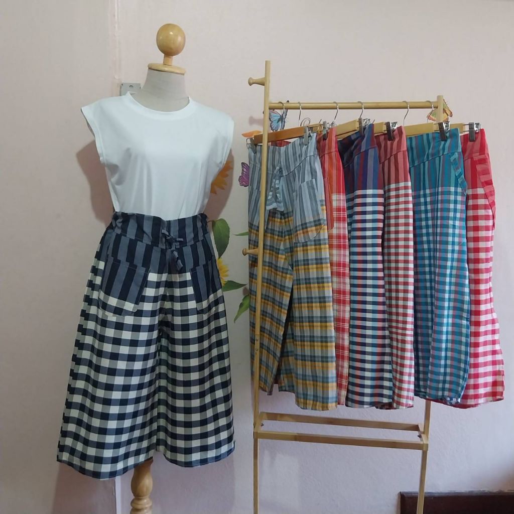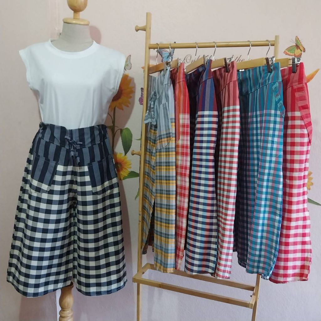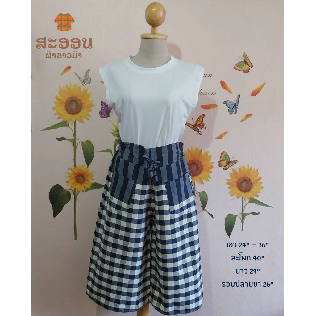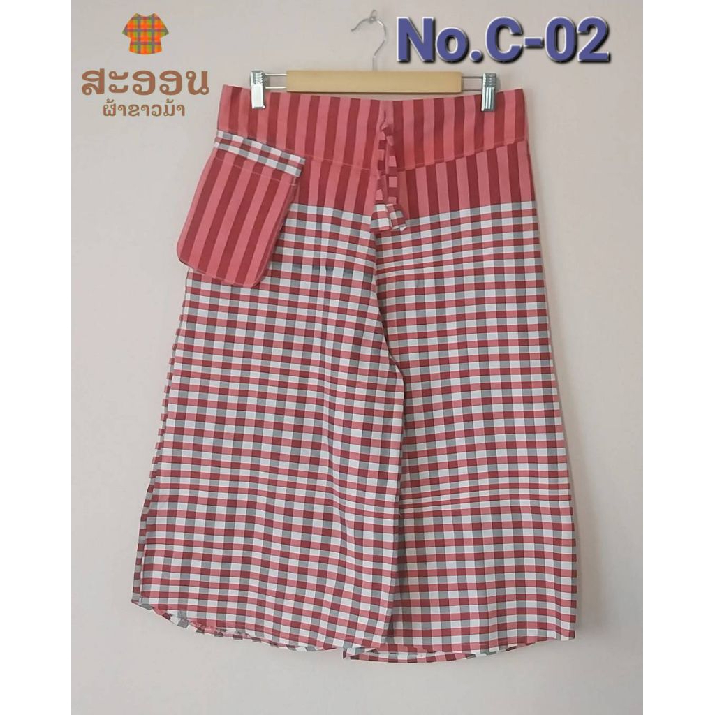 กางเกงผ้าขาวม้าห้าส่วน มีกระเป๋า 3 แบบ