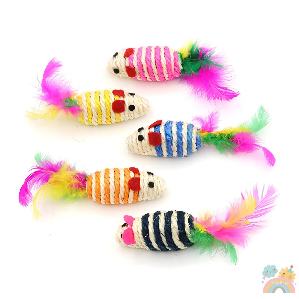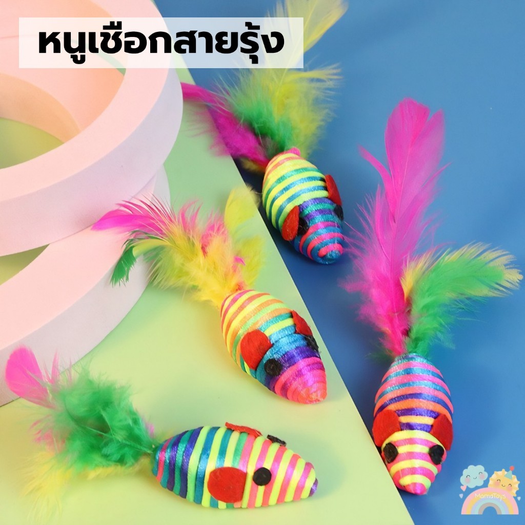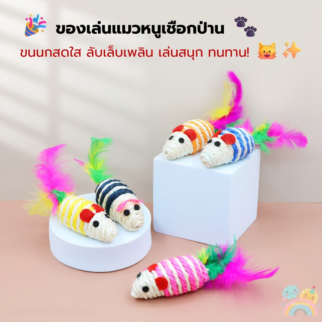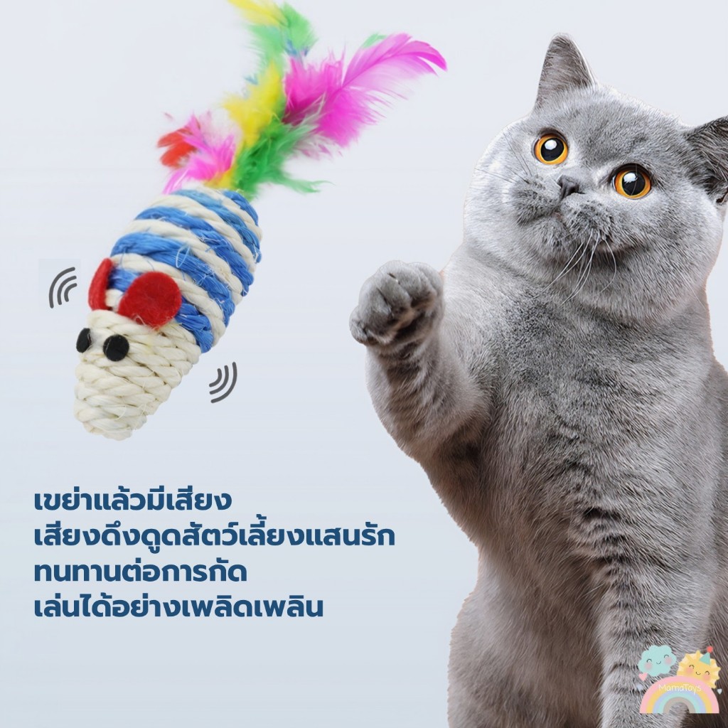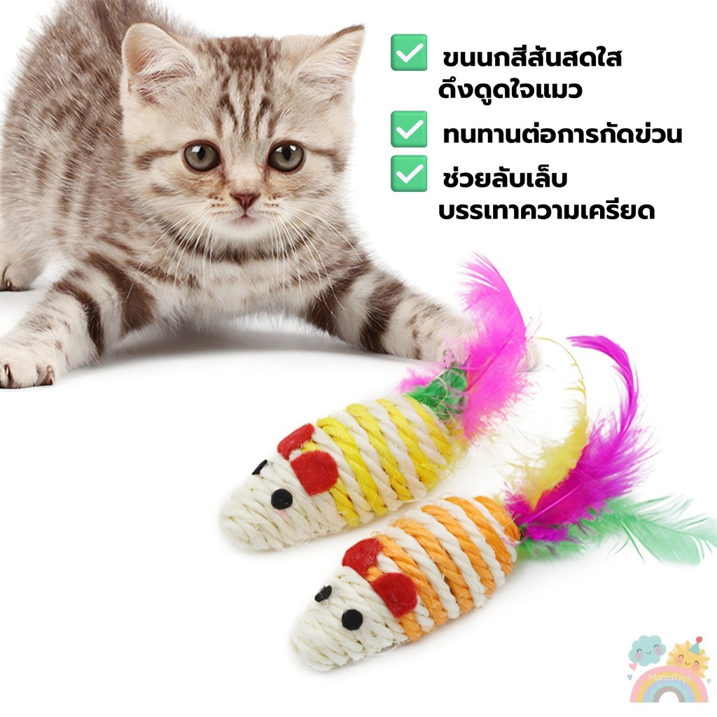 [COD] หนูปลอม ของเล่นแมว หนูเชือกหางขนนก หนูเชือกป่าน ของเล่นกัด ฝนเล็บได้ หนูขัดฟัน พร้อมส่ง