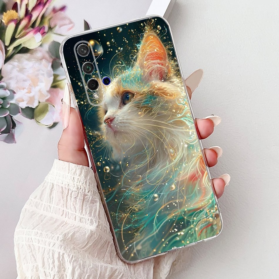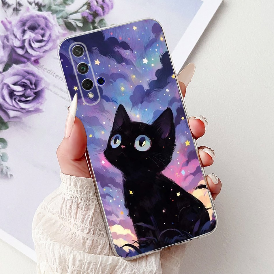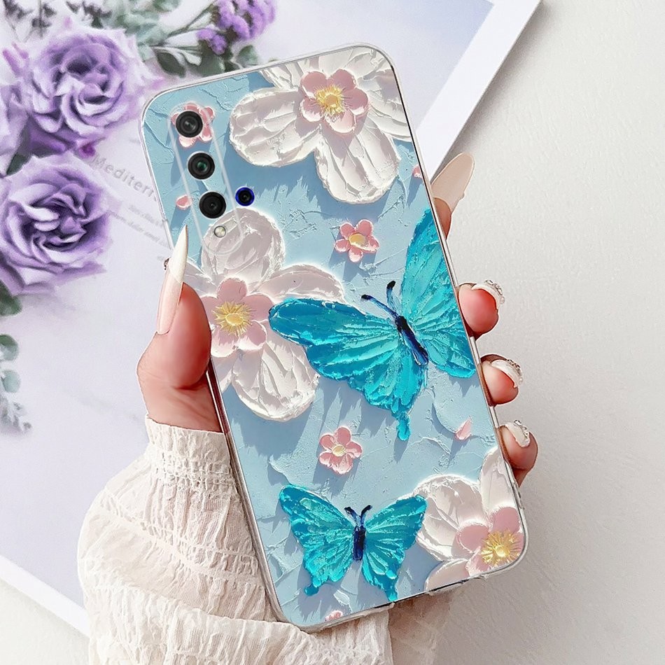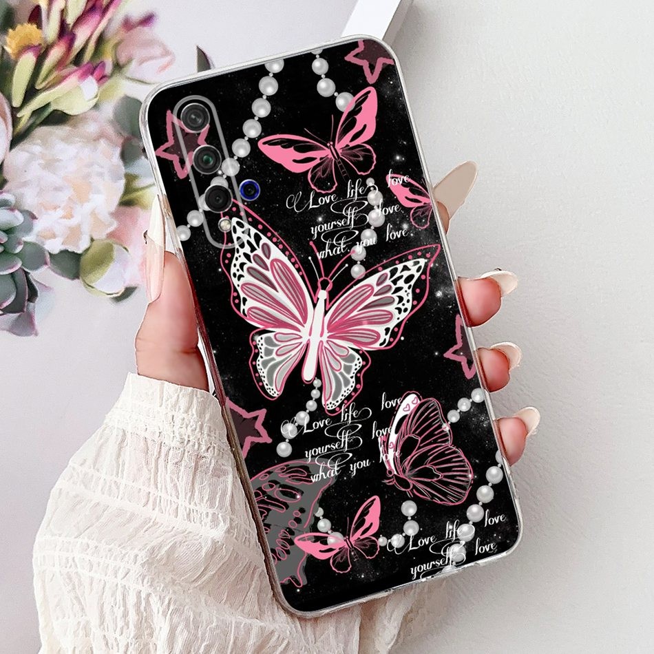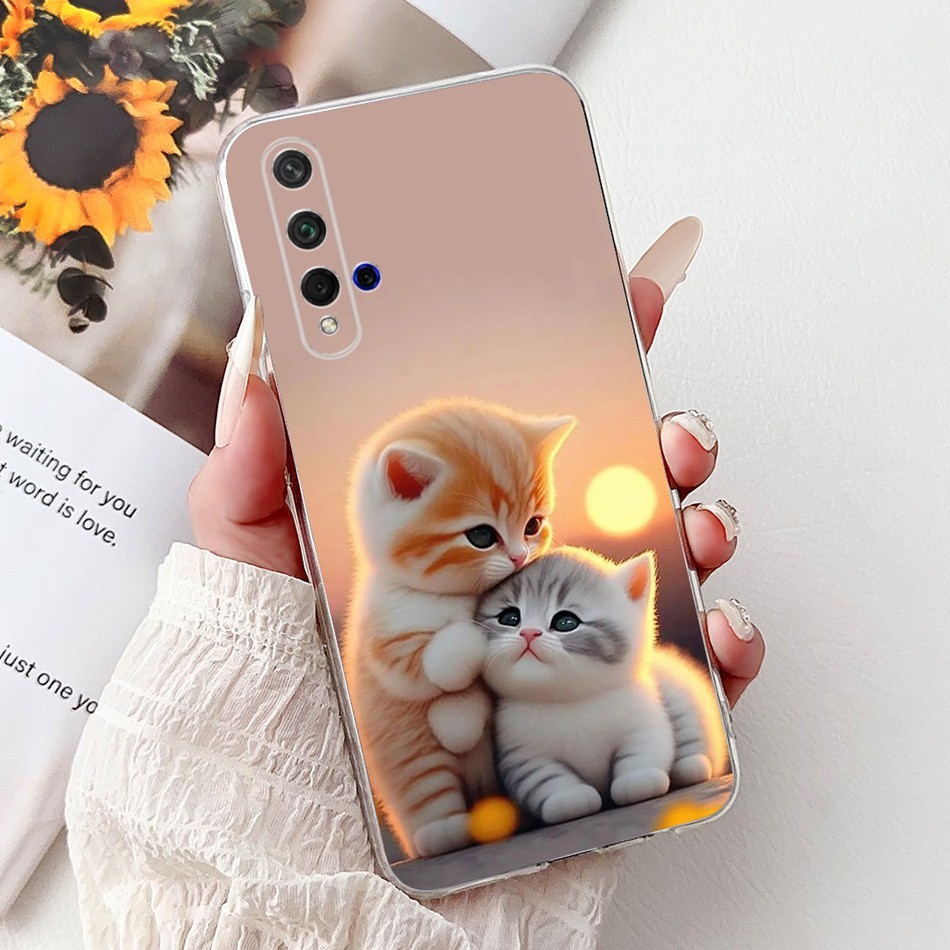 สําหรับ Huawei Nova 5T YAL-L21 YAL-L61 แมวน่ารักผีเสื้อดอกไม้รูปแบบปลอก Nova5T ซิลิโคนนุ่ม TPU เคสโทรศัพท์