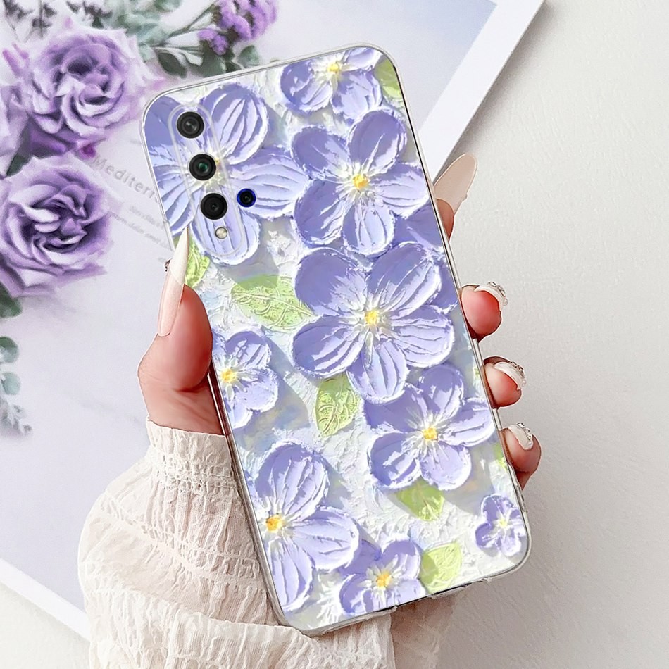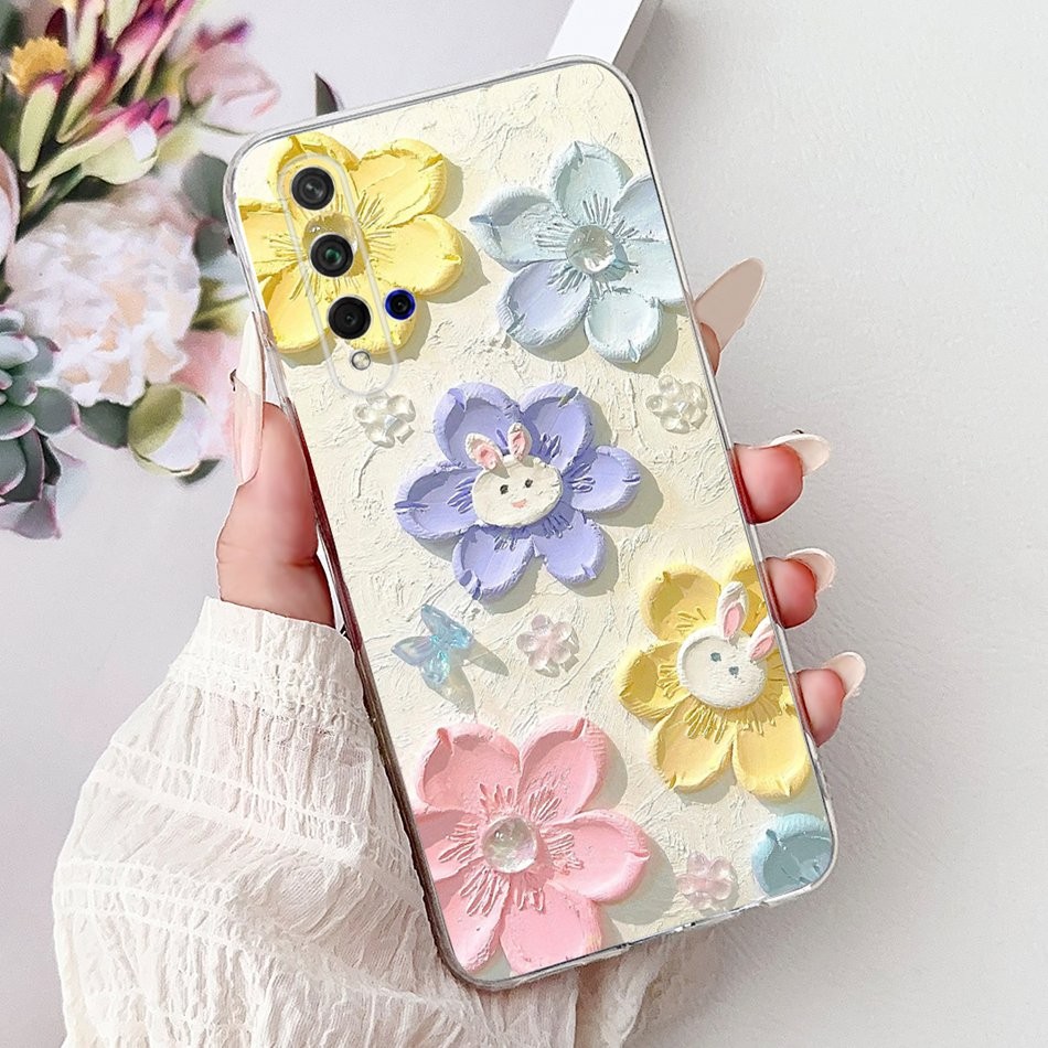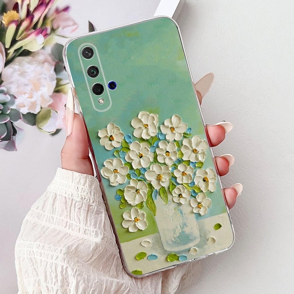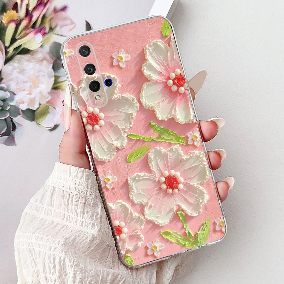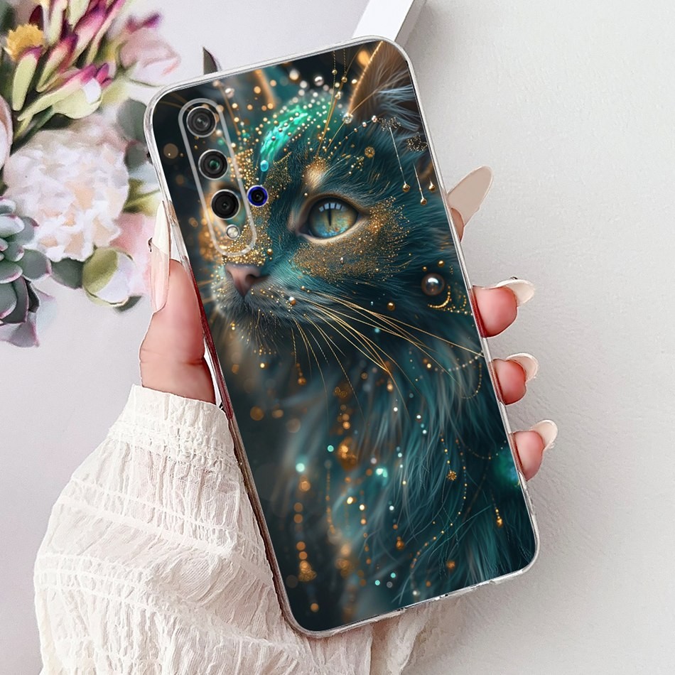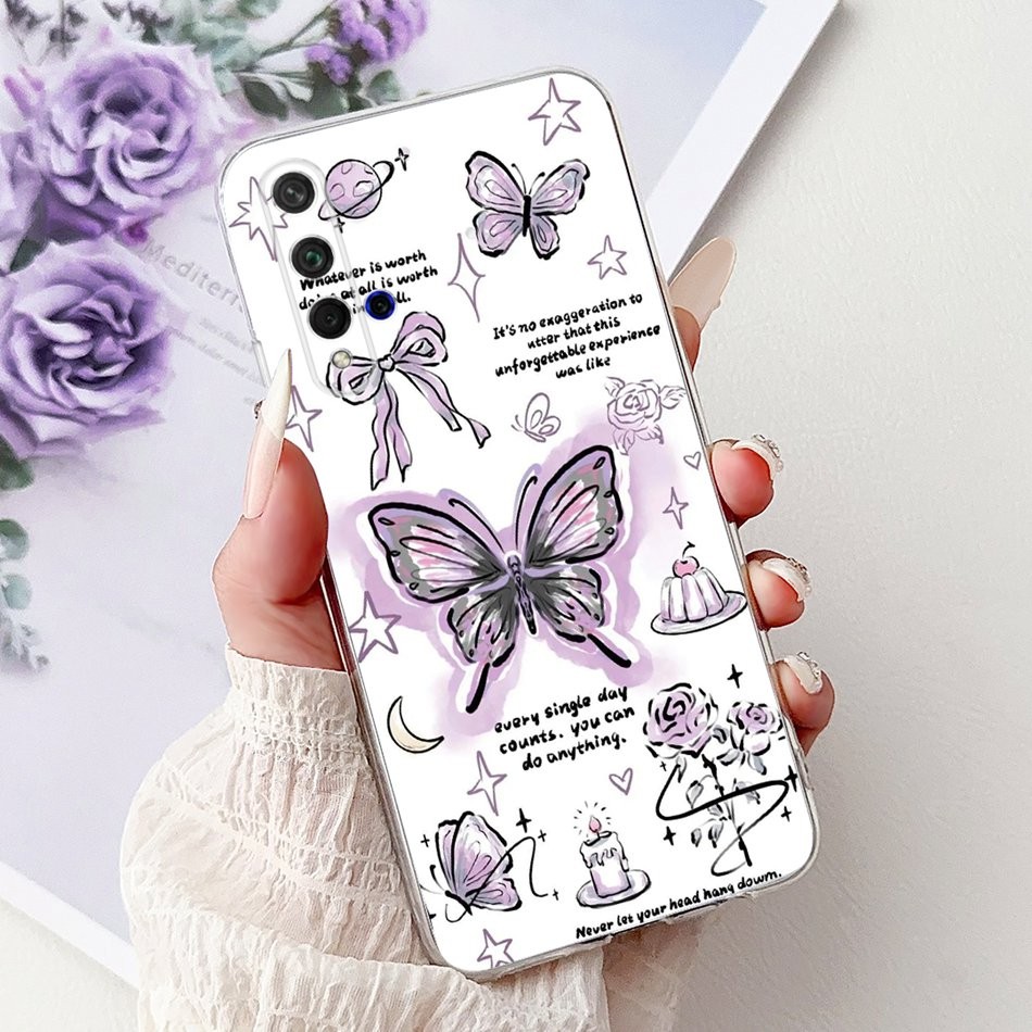 สําหรับ Huawei Nova 5T YAL-L21 YAL-L61 แมวน่ารักผีเสื้อดอกไม้รูปแบบปลอก Nova5T ซิลิโคนนุ่ม TPU เคสโทรศัพท์