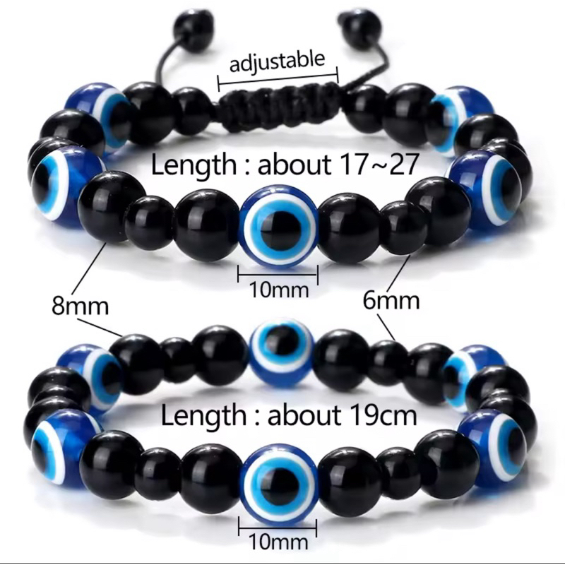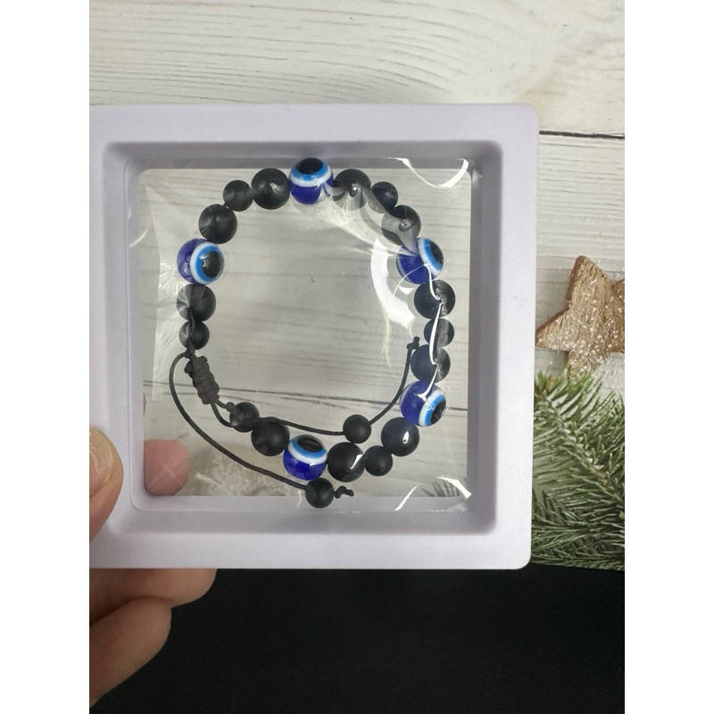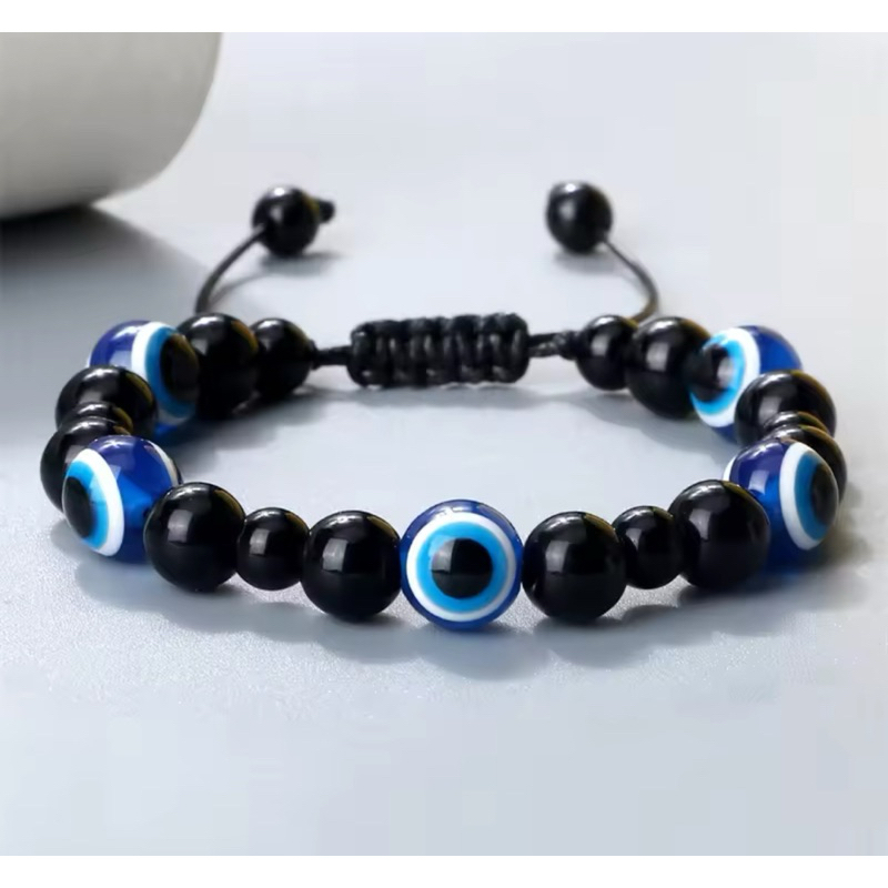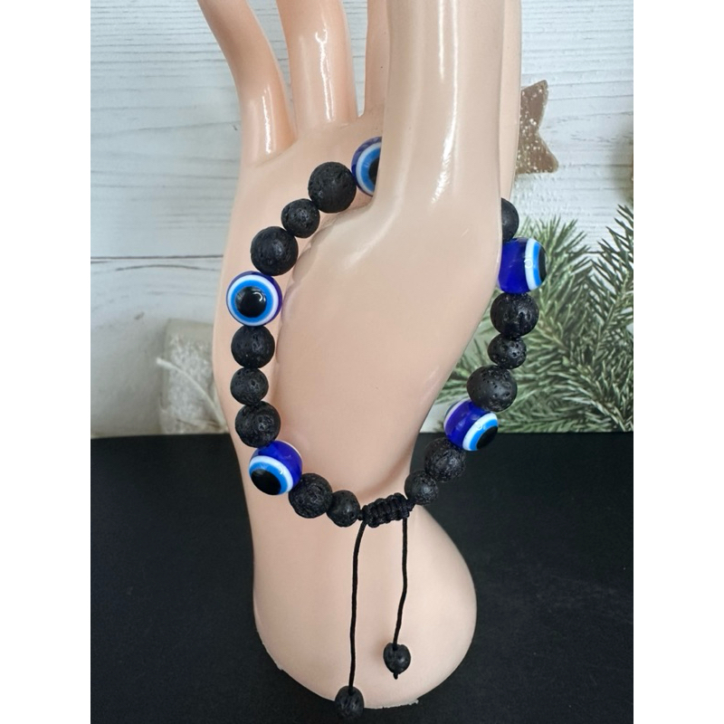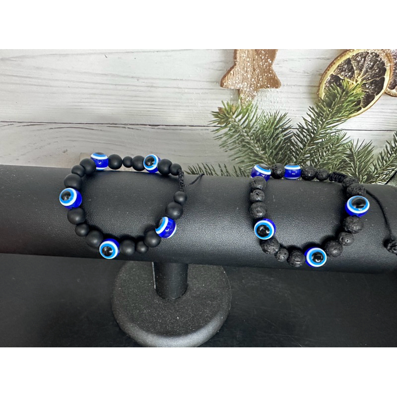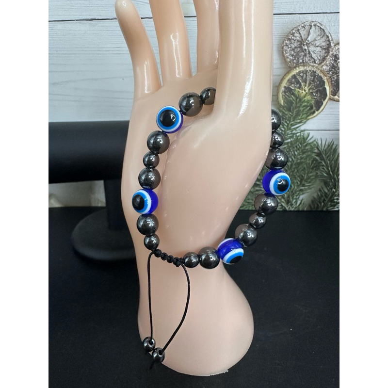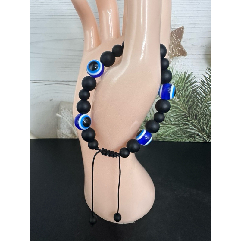 สร้อยข้อมือ Evil Eye +หินแท้ธรรมชาติ สินค้านำเข้าจากตุรกี ตัว Evil Eye เป็นเรซิ่น ข้อมือ 16 cm ขึ้นไป