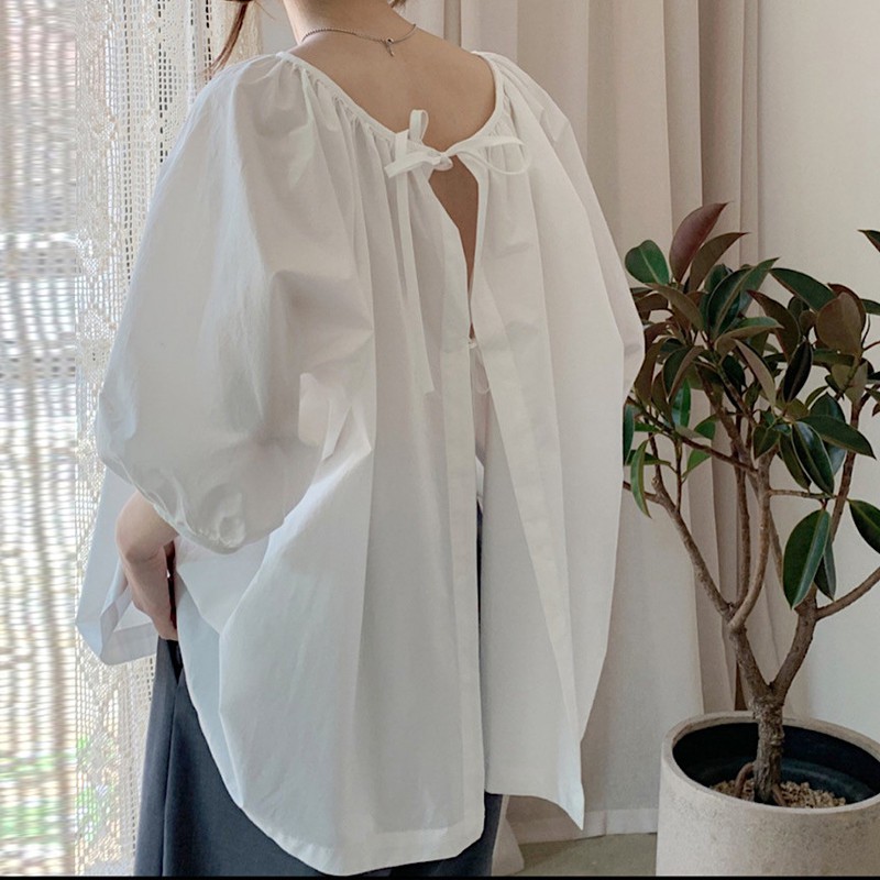 พร้อมส่ง 💫 simple minimal shirt C1246 เสื้อครอปยาวผูกหลัง เสื้อครอปคอกลม มี 3 สี ขาว กรม เขียวมิ้น