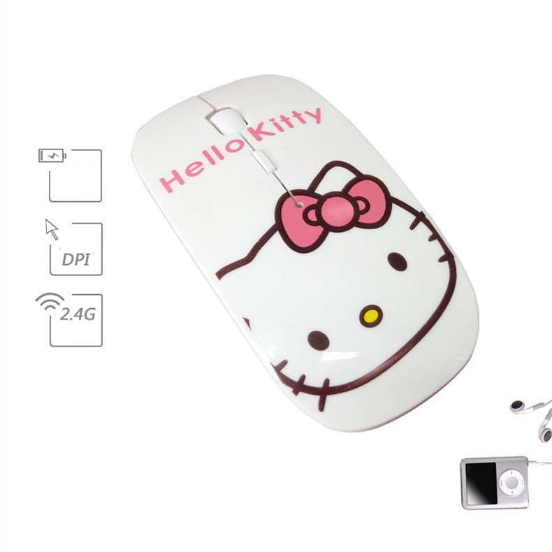 เมาส ์ ไร ้ สาย 2.4GHz เมาส ์ เงียบบางเฉียบสีฟ ้ าโดราเอมอนเมาส ์ สีขาวโดราเอมอนเมาส ์ โบว ์ คิตตี ้ เมาส ์ สีขาวหัวคิตตี ้ เมาส ์