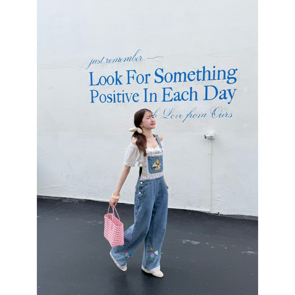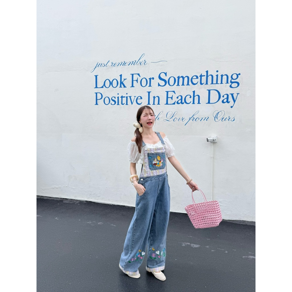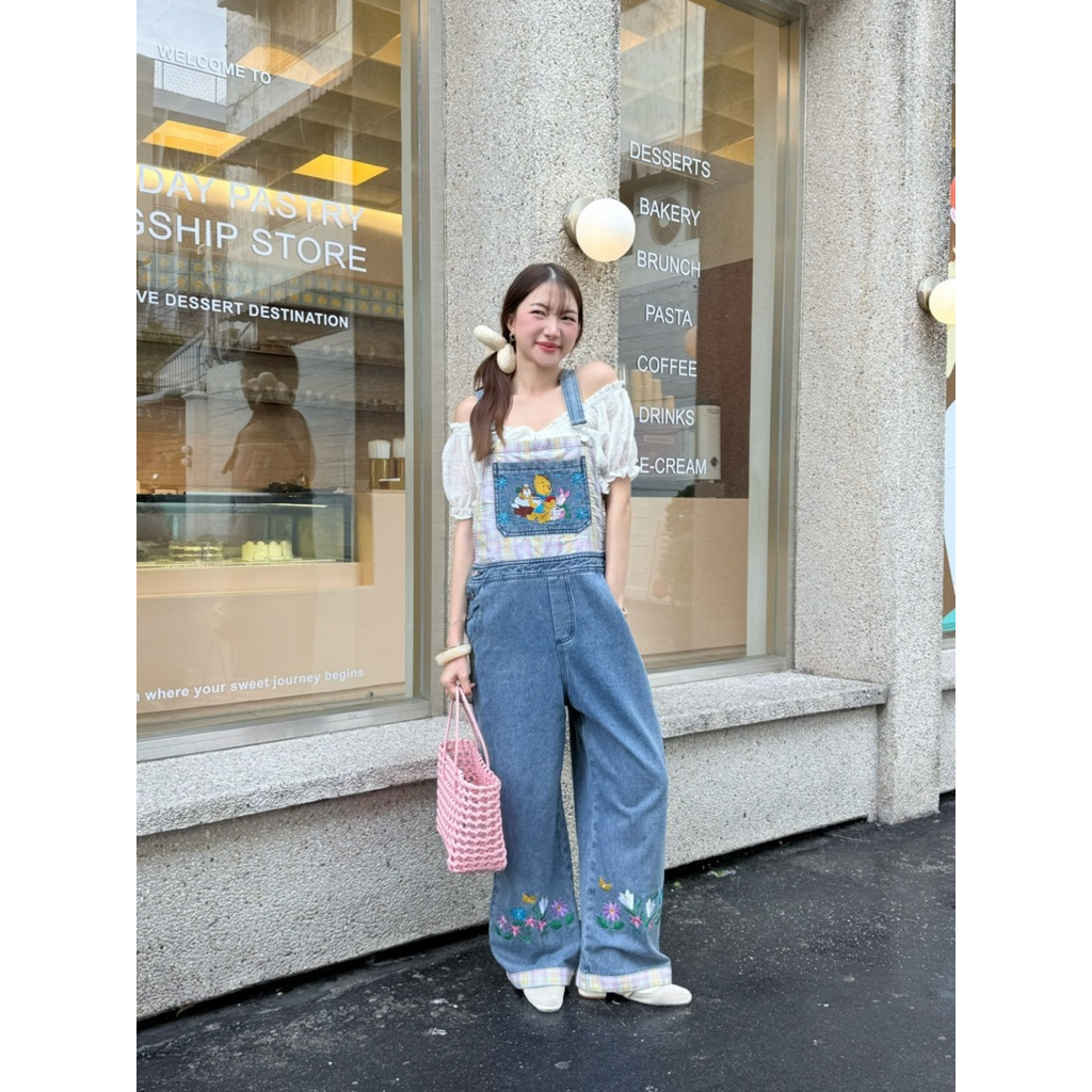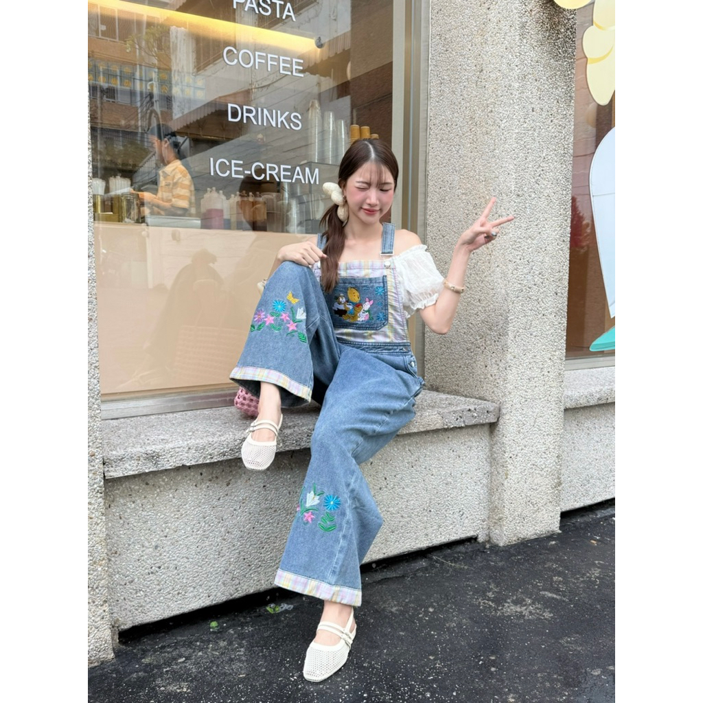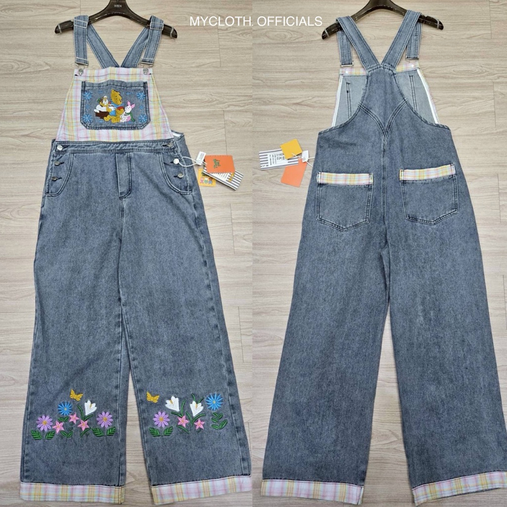 mycloth.officials (1011) - เอี๊ยมยีนส์ขายาว ทร งคาร์โก้กระบอกใหญ่ งานปัก สวยมากกกก