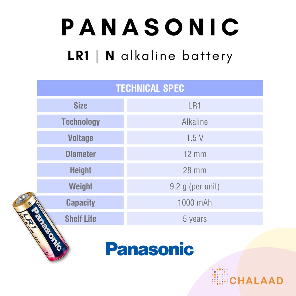 Panasonic LR1 | N Alkaline Battery (Pack 2) ถ่านขนาด LR1 หรือ N สำหรับรีโมต ไฟ นาฬิกา และเซ็นเซอร์ประตู ismartgate