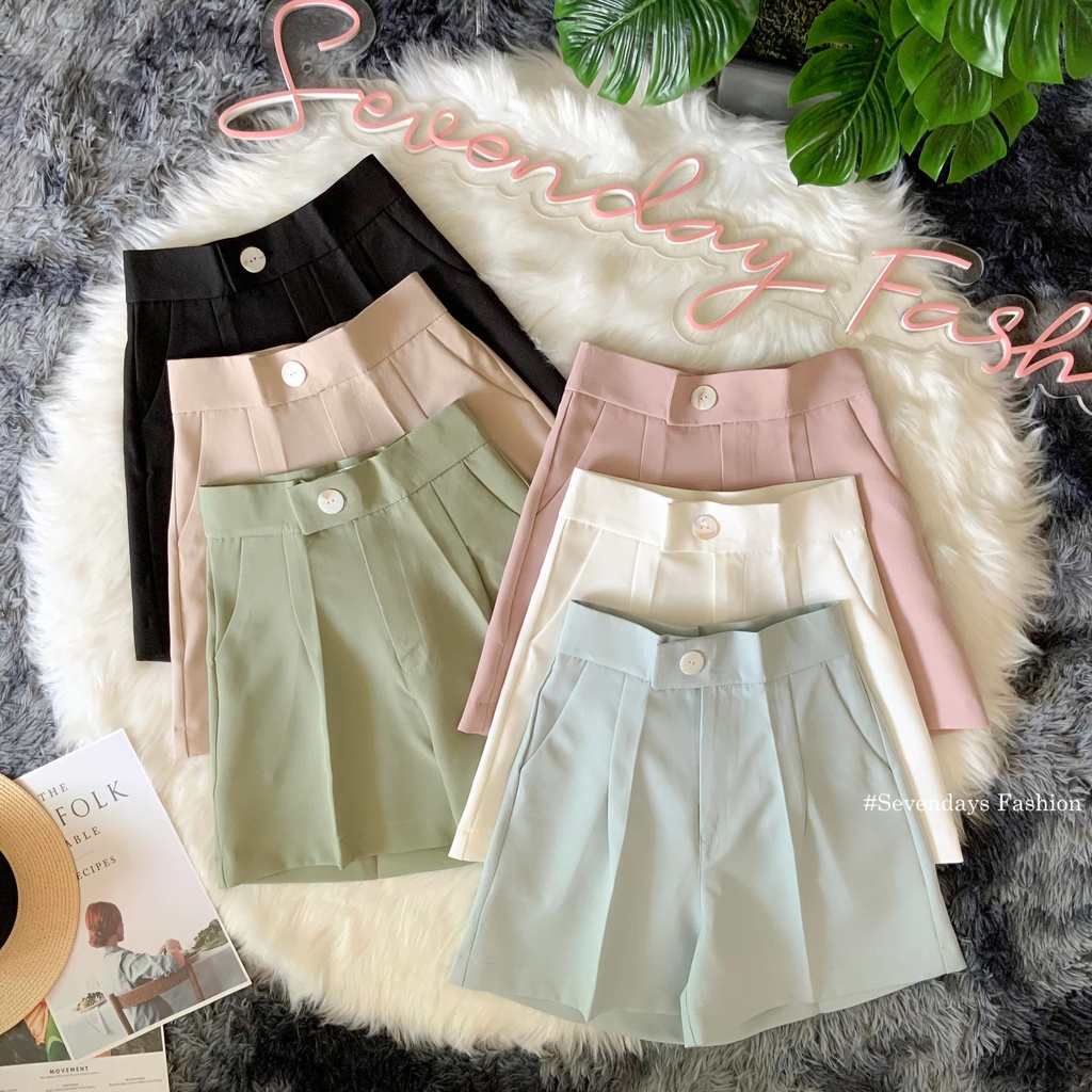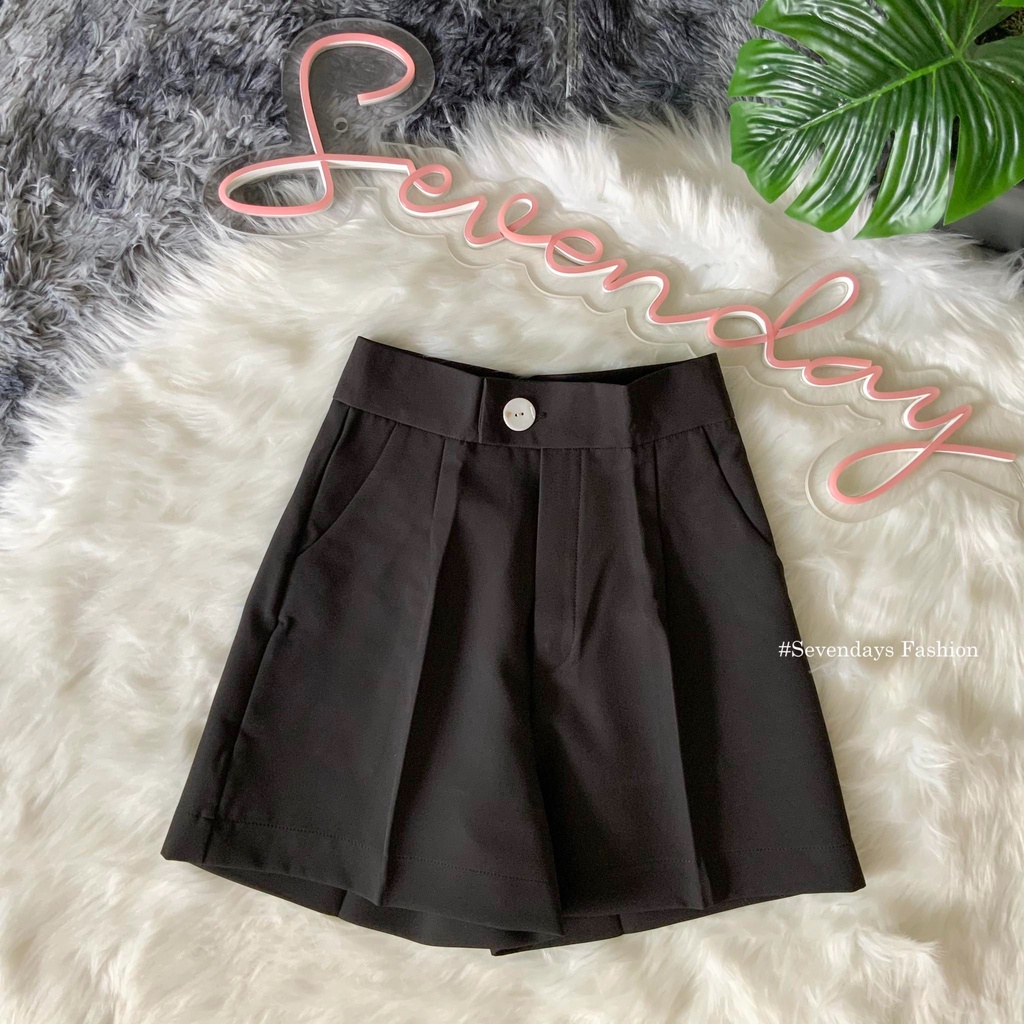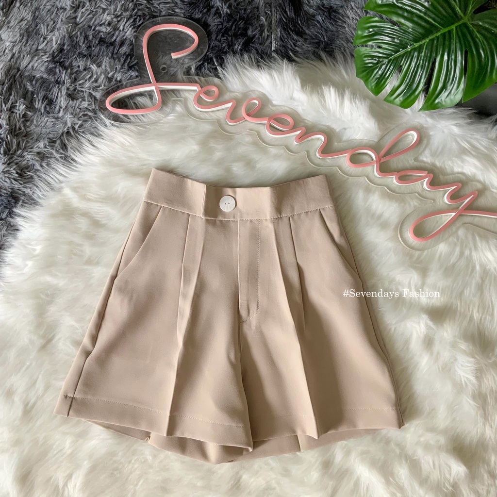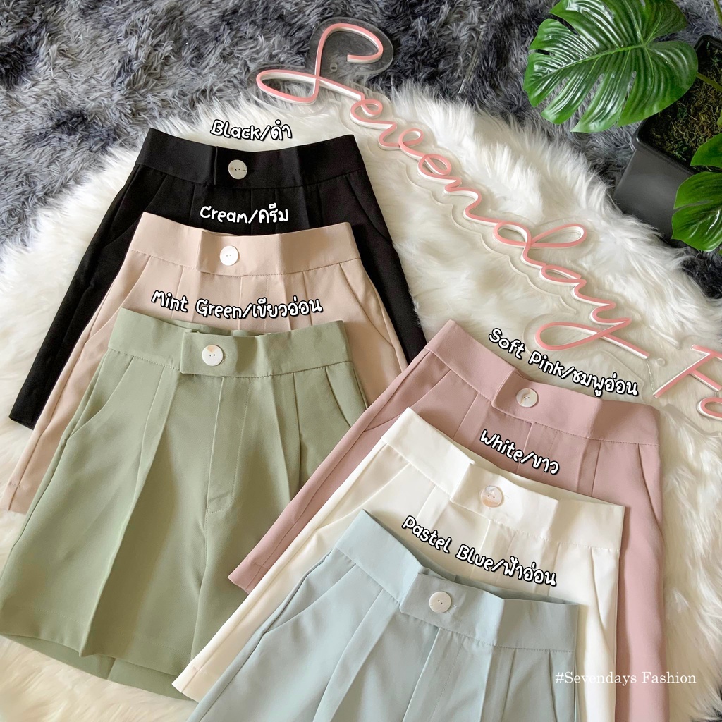 🔥New item🔥 #005 กางเกงขาสั้นผู้หญิง กางเกงขาสั้นทรงเอวสูง ผ้าไมโครไม่ยืด แต่งกระดุมลายหินอ่อน มีกระเป๋าสองข้าง
