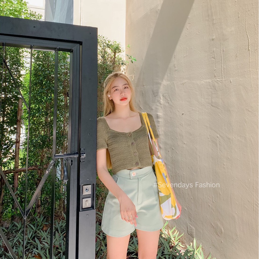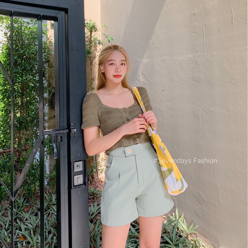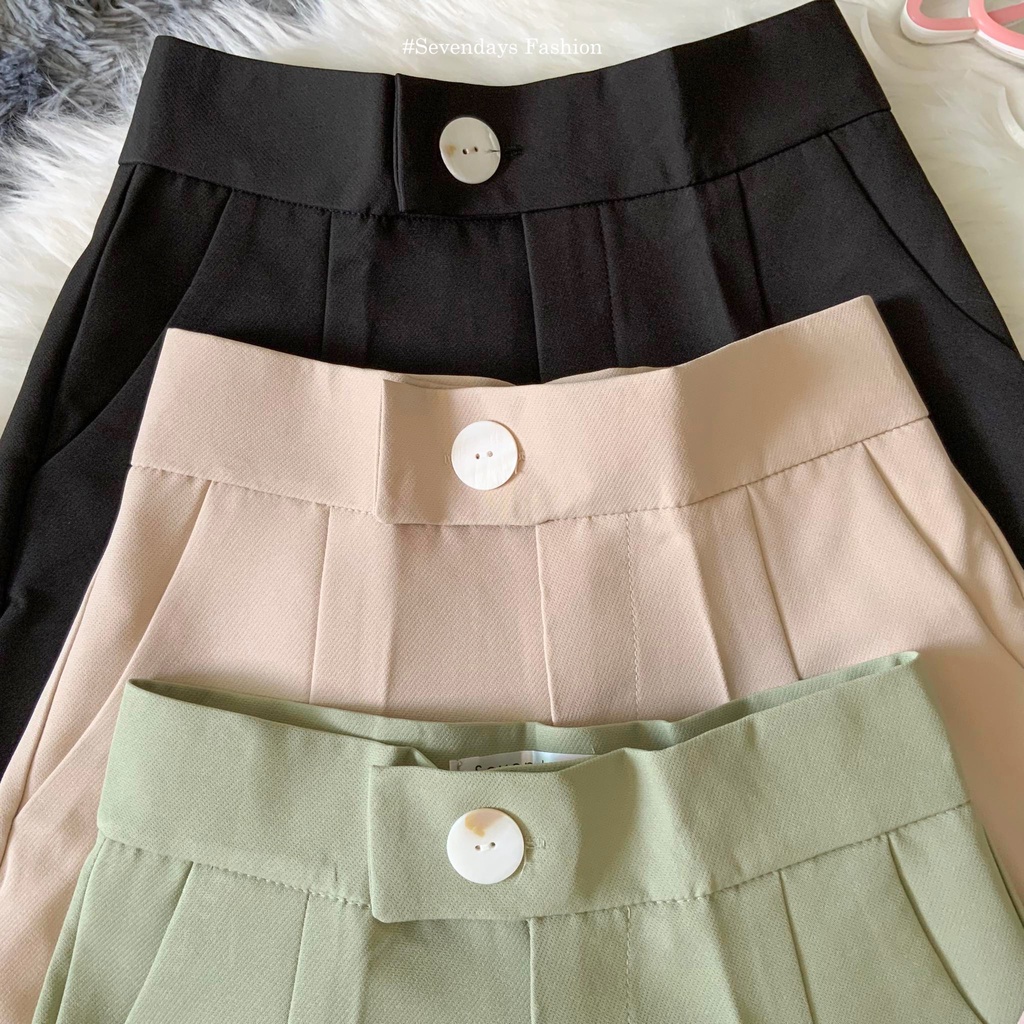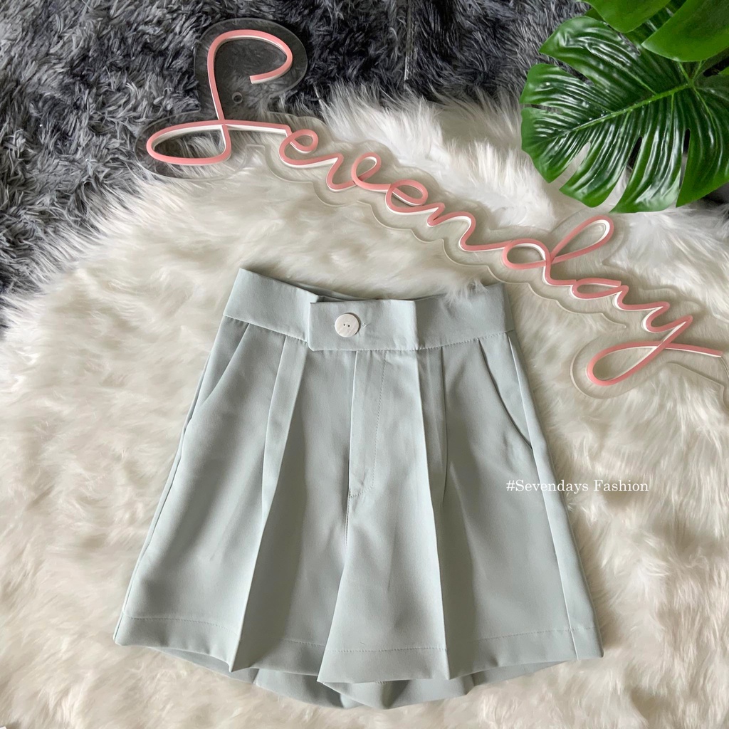 🔥New item🔥 #005 กางเกงขาสั้นผู้หญิง กางเกงขาสั้นทรงเอวสูง ผ้าไมโครไม่ยืด แต่งกระดุมลายหินอ่อน มีกระเป๋าสองข้าง