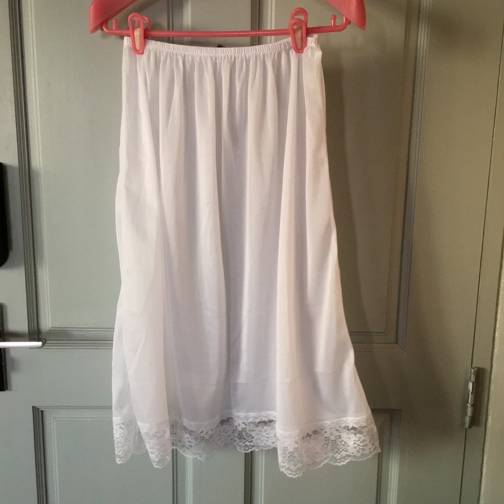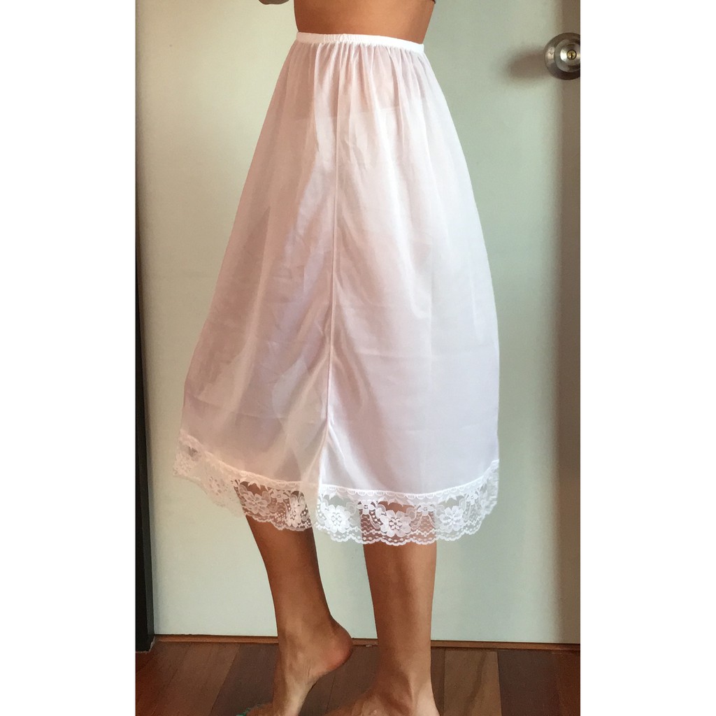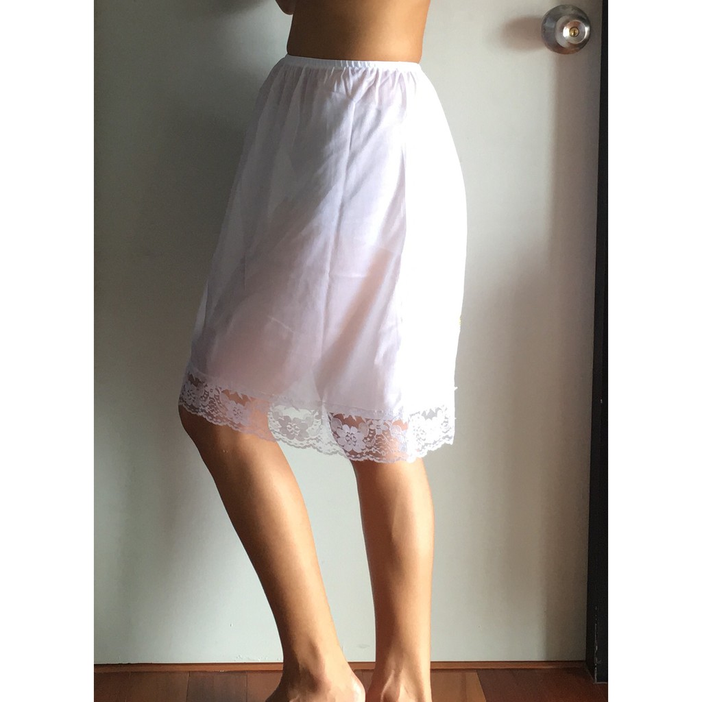 กระโปรงซับใน สีขาว สลิปกันโป๊ ผู้หญิง เอวยืด ผ้าไนล่อนอย่างดี แต่งลูกไม้สวยงาม