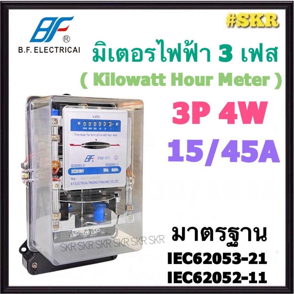 ฺBF มิเตอร์ไฟฟ้า 3P 4W 15/45A 30/100A มาตรฐาน IEC62053-21 IEC62052-11 มิเตอร์ 3 เฟส 4 สาย 380V Kilowatt HourMeter