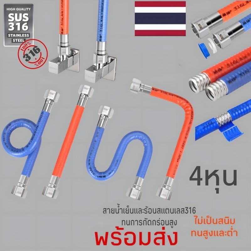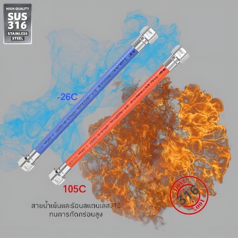 สายท่ออ่อนสแตนเลส316 พร้อมส่ง ยาว20Cm-2เมตร