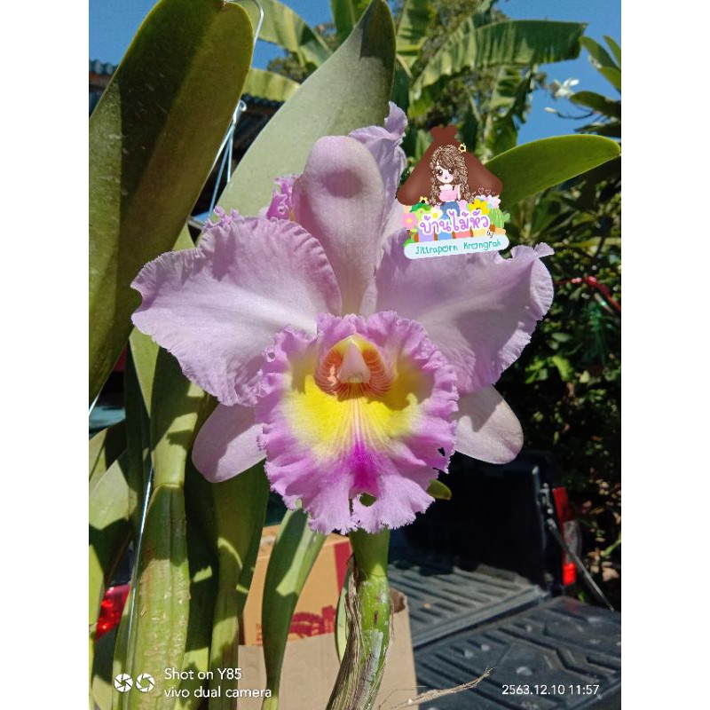 กล้วยไม้ สกุลแคทลียา มาฮีน่า สีม่วงดอกใหญ่ กลิ่นดอกหอม ไม่ติดดอก