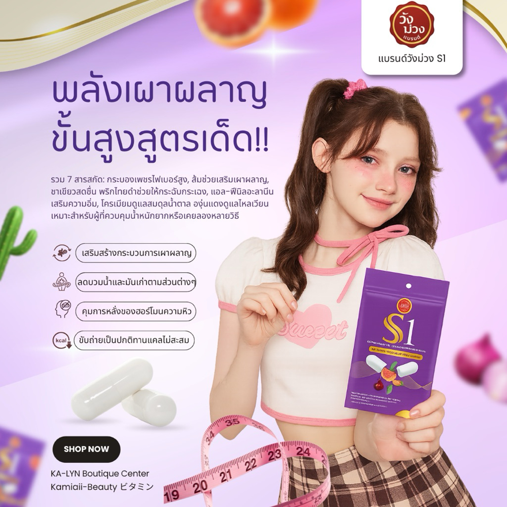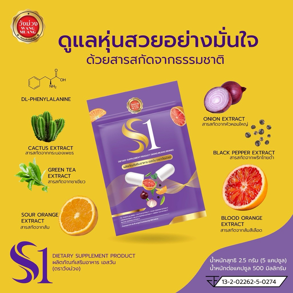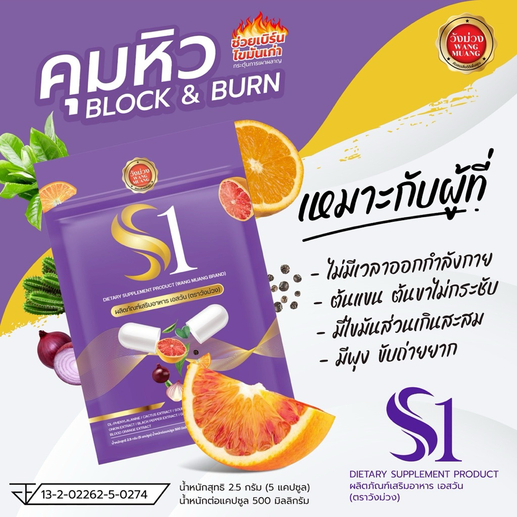 🟣NEW| วังม่วง S1 สูตรสตรอง🔥โปรแรง ลดน้ำหนักเร่งรัด5แคปซูล ไม่อยากข้าว ขับออก ปรับทุกระบบ ลงD สยบอืด❗️สารสกัดธรรมชาติ100%