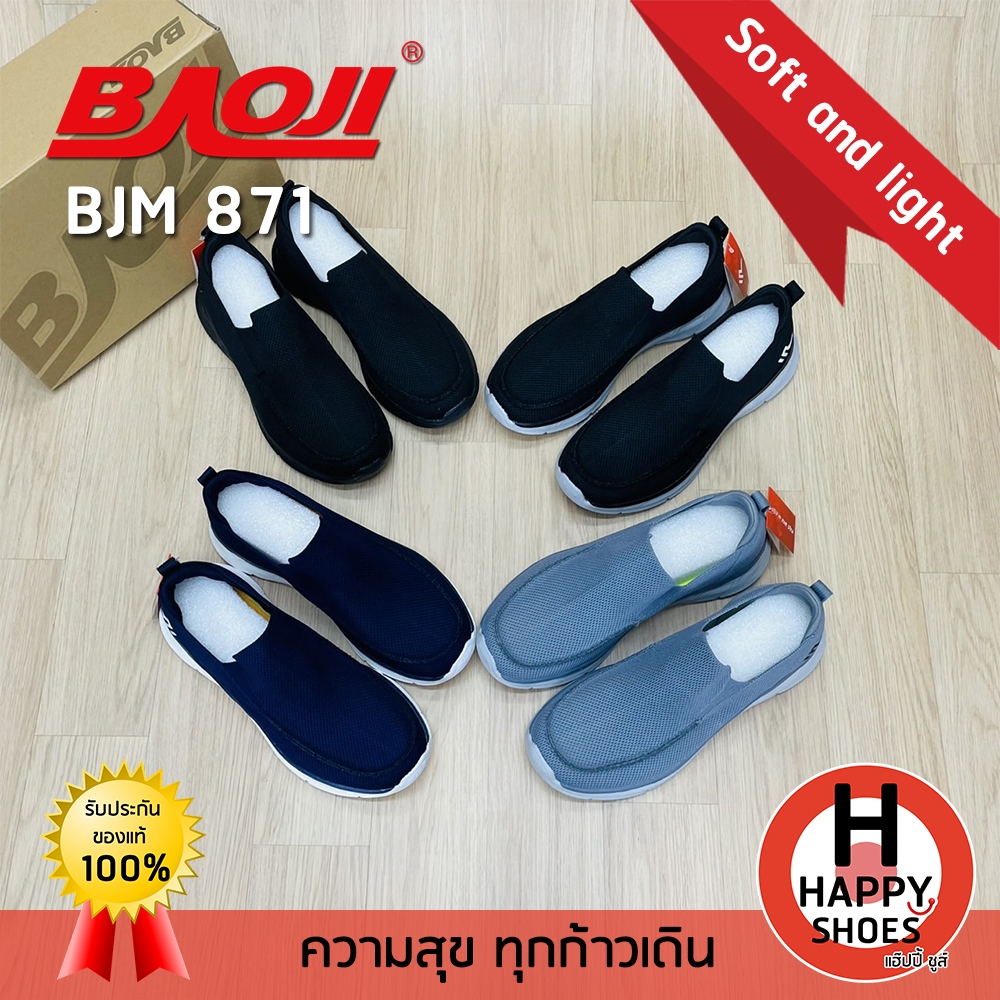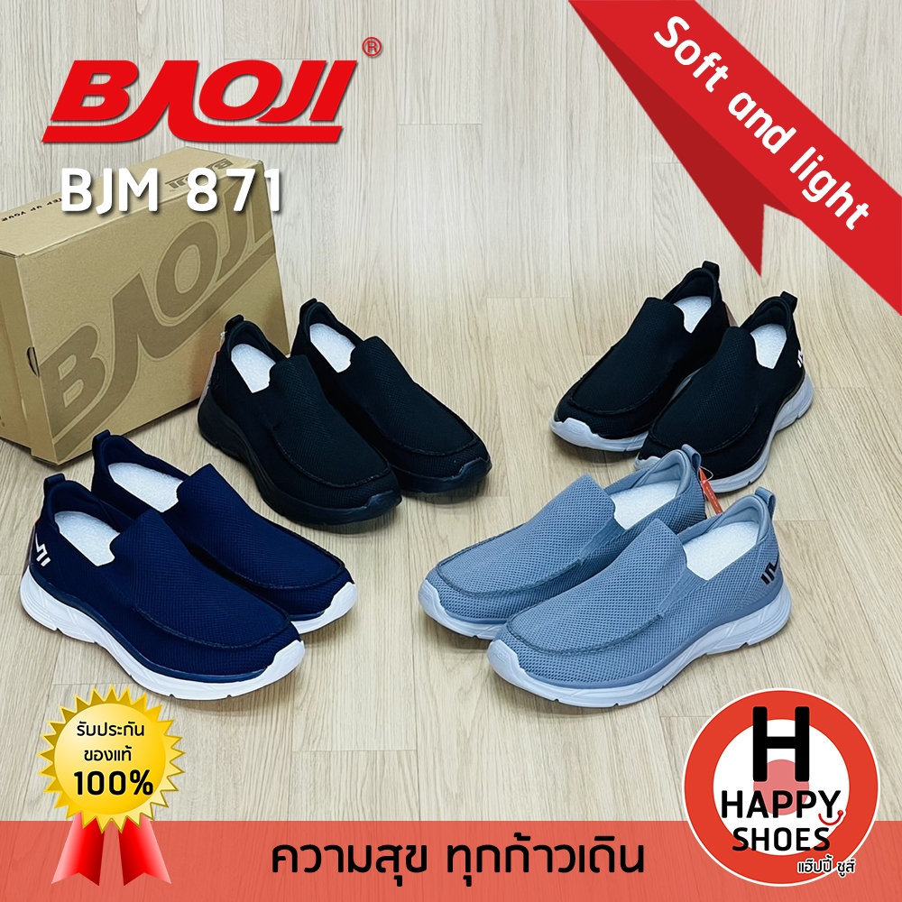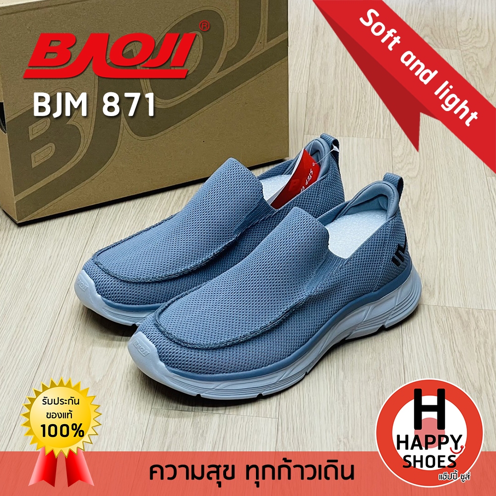 [🥇บาโอจิแท้100%👟ไซส์ 41-45🆓ฟรี...ถุงเท้า 1 คู่] BAOJI รุ่น BJM871 รองเท้าสลิปออนSlip-on ออกกำลังกาย รองเท้าผ้าใบผู้ชาย