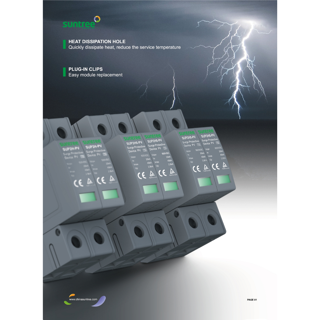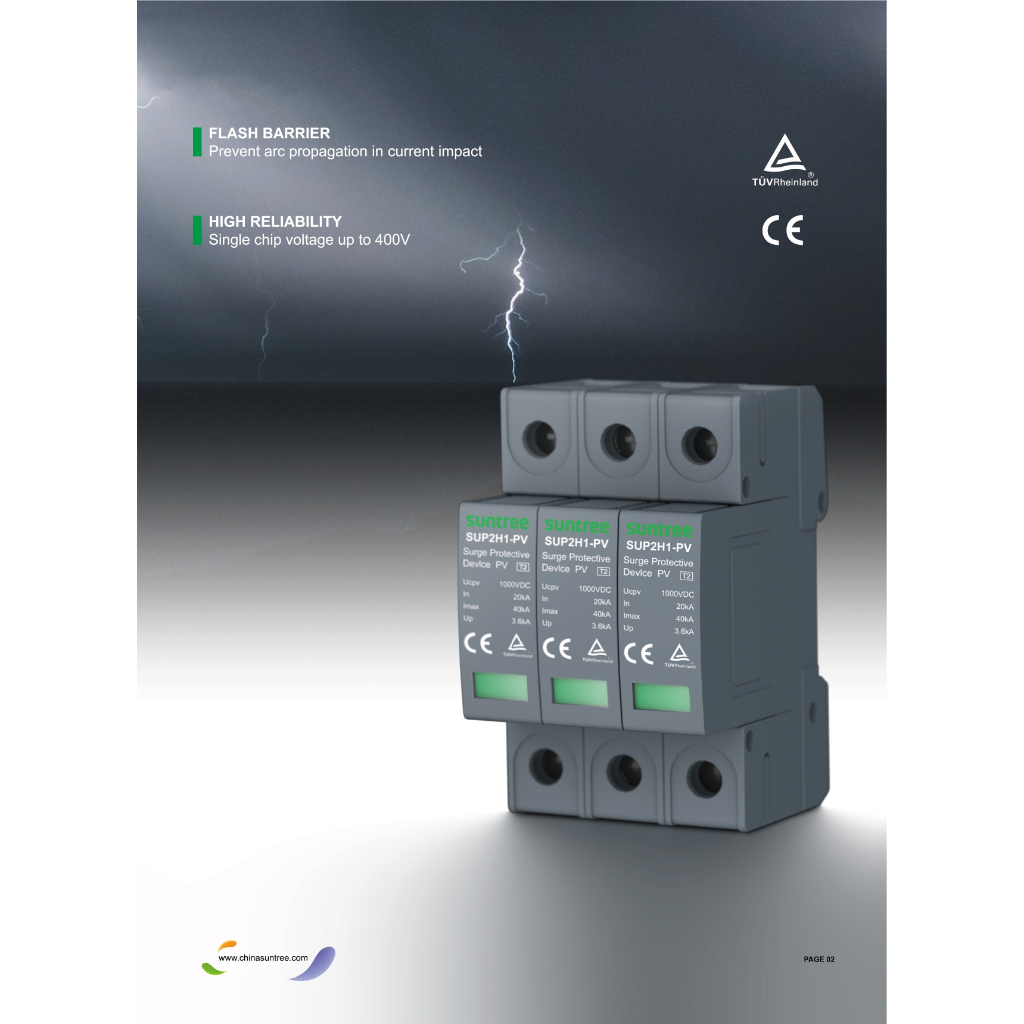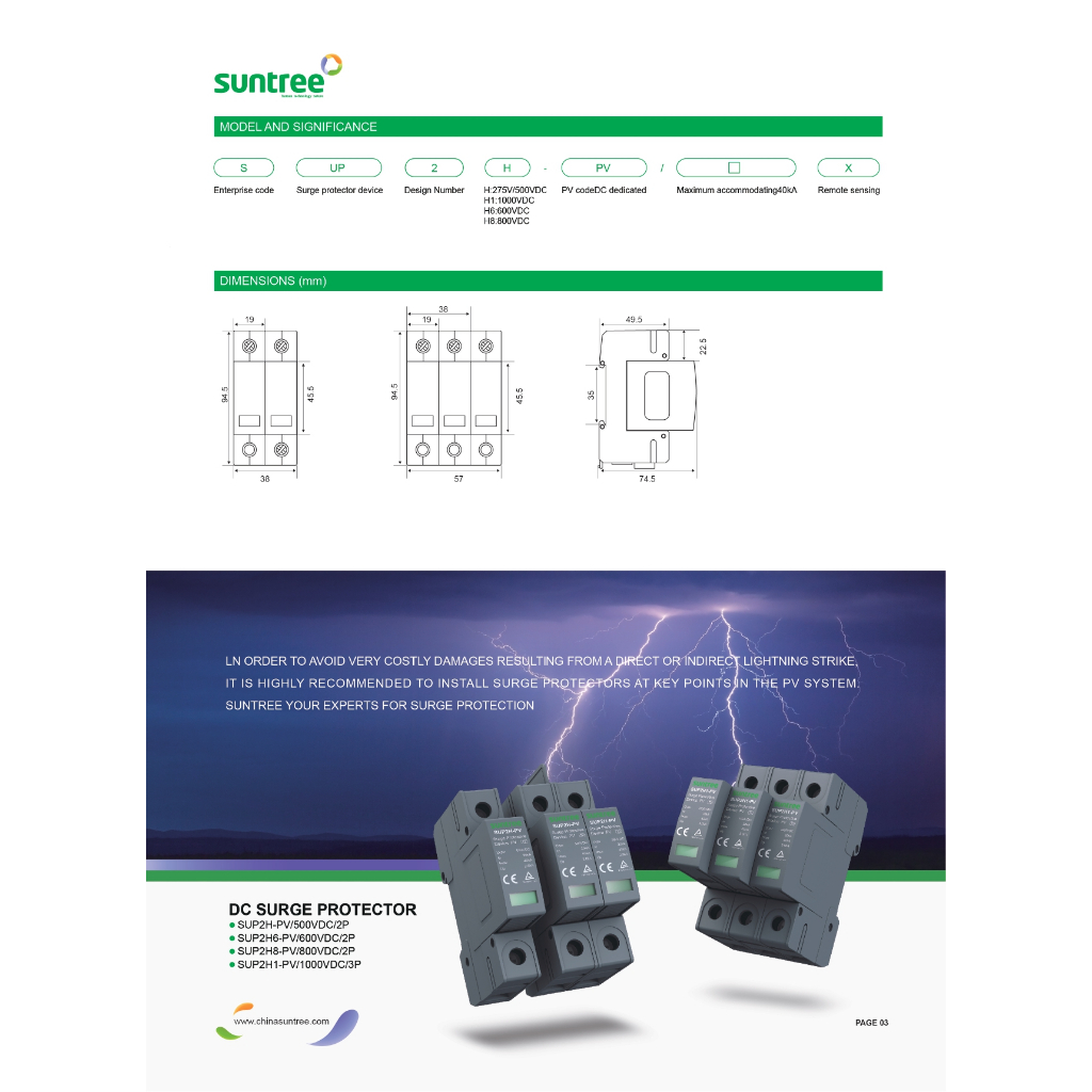 Surge Protector Device SPD กันฟ้าผ่า 2P และ 3P SUP2H-PV (SUP2H8-PV), SUP2H1-PV , SUP2-PV (800V-1500V) 20KA/40KA SUNTREE