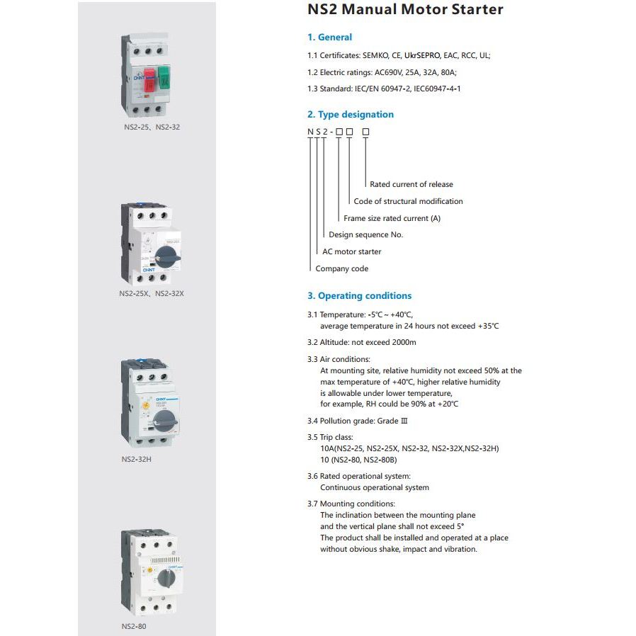 NS2-25X , NS2-32X , NS2-80 มอเตอร์เซอร์กิตเบรกเกอร์ Motor Circuit Breaker "CHINT"