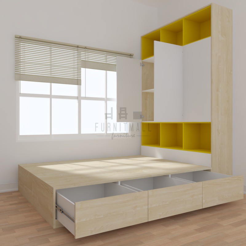 เตียงทาทามิ TATAMIBED พร้อมตู้หัวเตียงขนาด 5 ฟุต