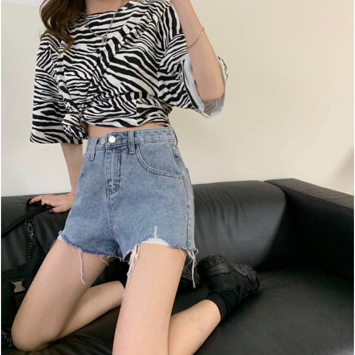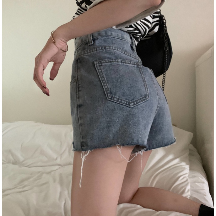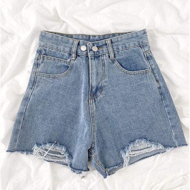 ✨รุ่นใหม่✨(S-5XL) กางเกงยีนส์ขาสั้น กางเกงยีนส์เอวสูง แต่งปลายขาด รุ่น AL-CP309