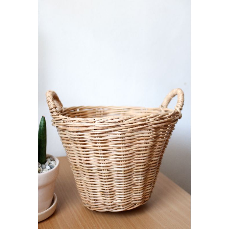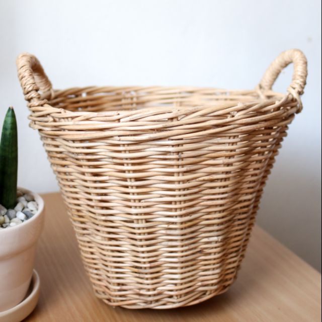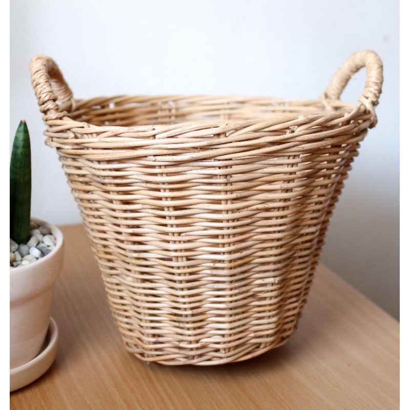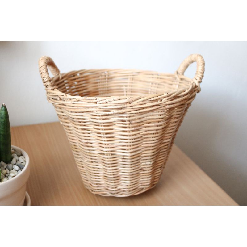 ตะกร้าหวายสานทรงสูง มีหู ตะกร้าหวายมีหู กระถางหวายมีหู กระถางต้นไม้ ตะกร้าใส่ของ🌈