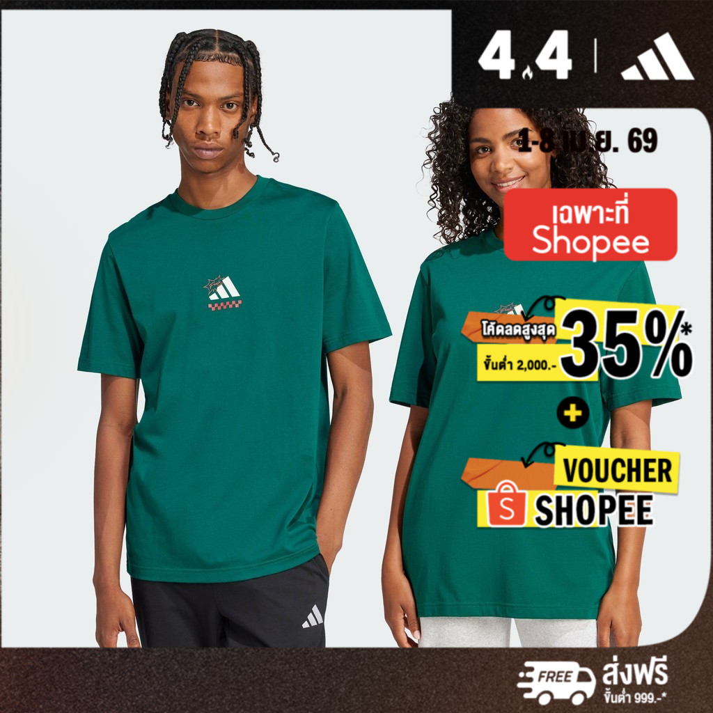 adidas ไลฟ์สไตล์ เสื้อยืดพิมพ์ลาย Lounge Pizza ผู้ชาย สีเขียว JJ4017