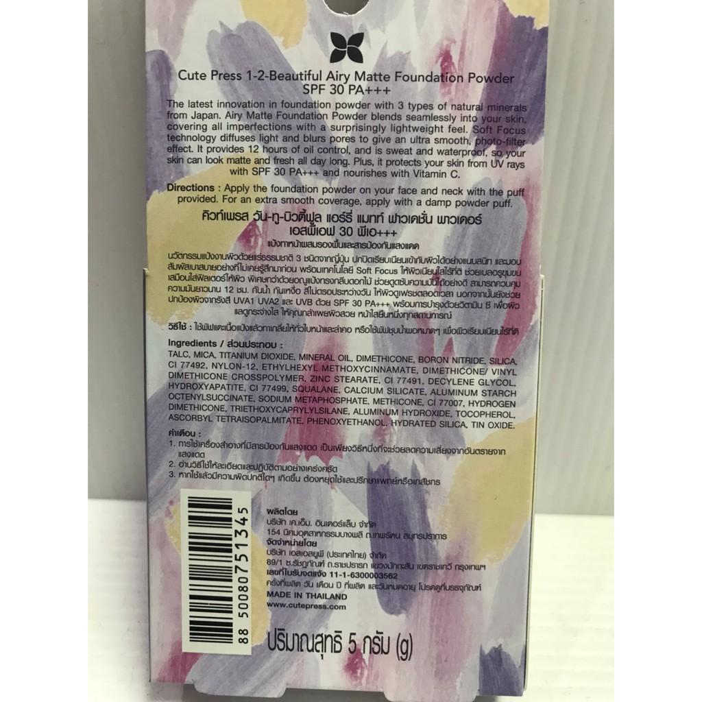 คิวท์เพรส วัน-ทู-บิวตี้ฟู แอรรี่ แมทท์ ฟาวเดชั่น พาวเดอร์ เอสพีเอฟ 30 พีเอ+++