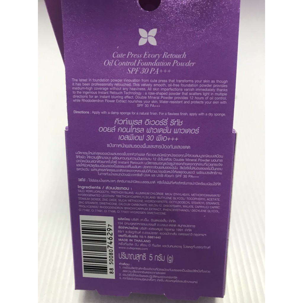 คิวท์เพรส อิเวอร์รี่ รีทัช ออยล์ คอนโทรล ฟาวเดชั่น พาวเดอร์ เอสพีเอฟ 30+++