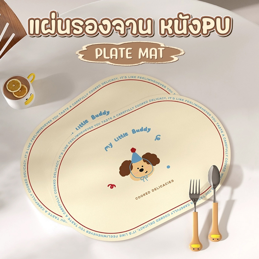 🏷️[Home] แผ่นรองจาน หนัง PU Dog กันน้ํา แผ่นรองแก้ว ที่รองจาน กันน้ํามัน บนโต๊ะอาหาร ทนความร้อน 30*45