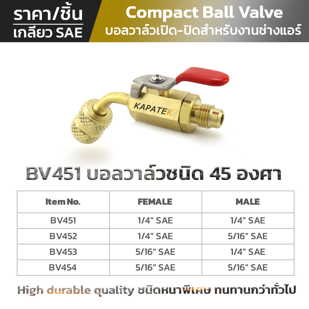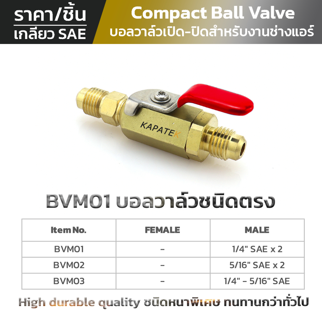 KAPATEK บอลวาล์ว Ball Valve บอลวาล์วเปิด-ปิด สำหรับเกจวัดน้ำยา สายชาร์จน้ำยา อะไหล่ช่างแอร์