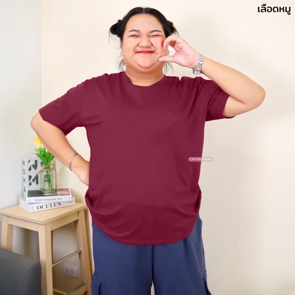 เสื้อยืด ไซส์ใหญ่ 6XL คอกลม ตัวยาว สีพื้น ผ้าคอตตอนผสม เนื้อผ้านิ่ม ยืดได้เยอะ 8000#
