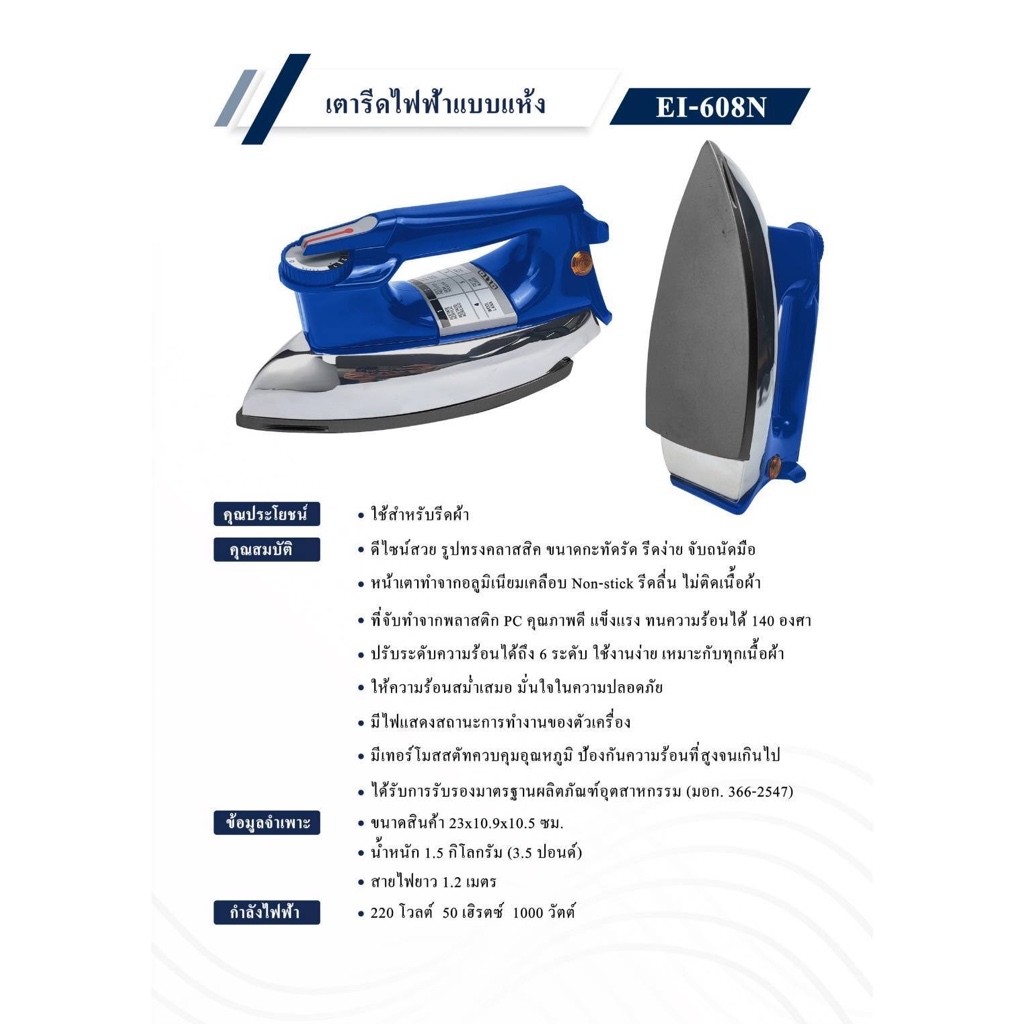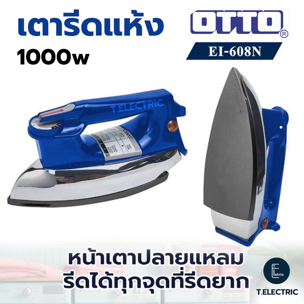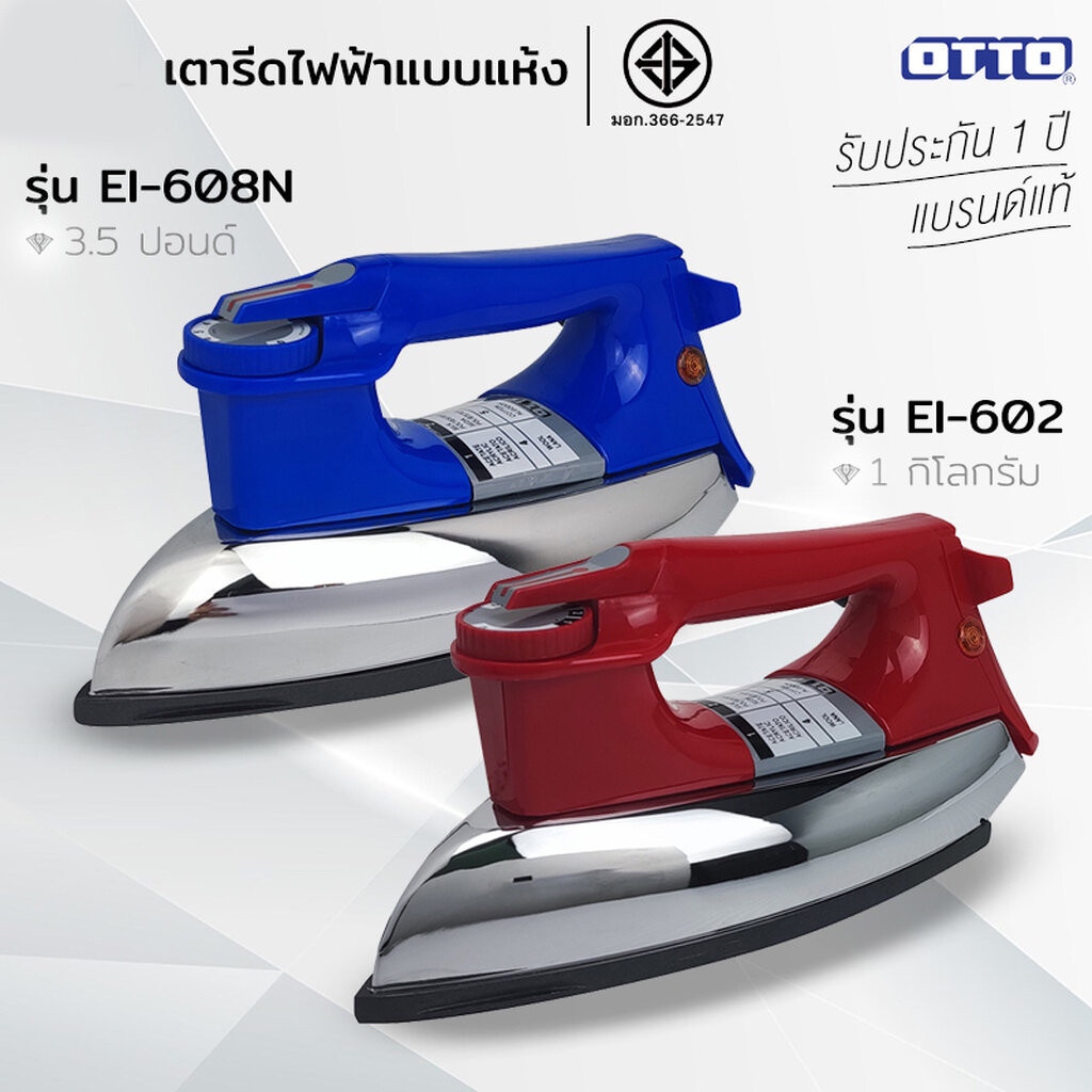 OTTO เตารีดแห้ง กำลังไฟ 1000w รุ่น EI-608N / EI-602 เคลือบ nonstick รับประกัน 1 ปี เตารีดไฟฟ้า เตารีดโบราณ