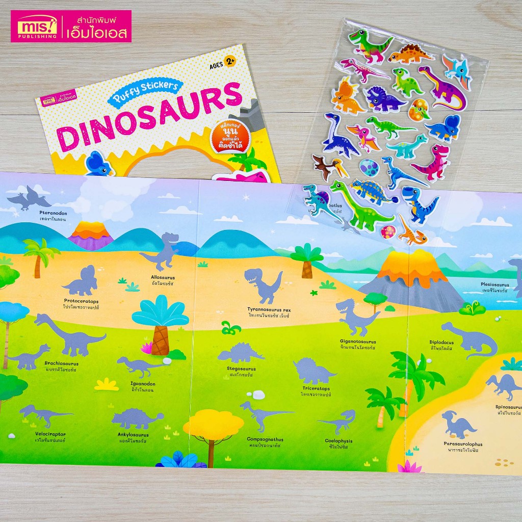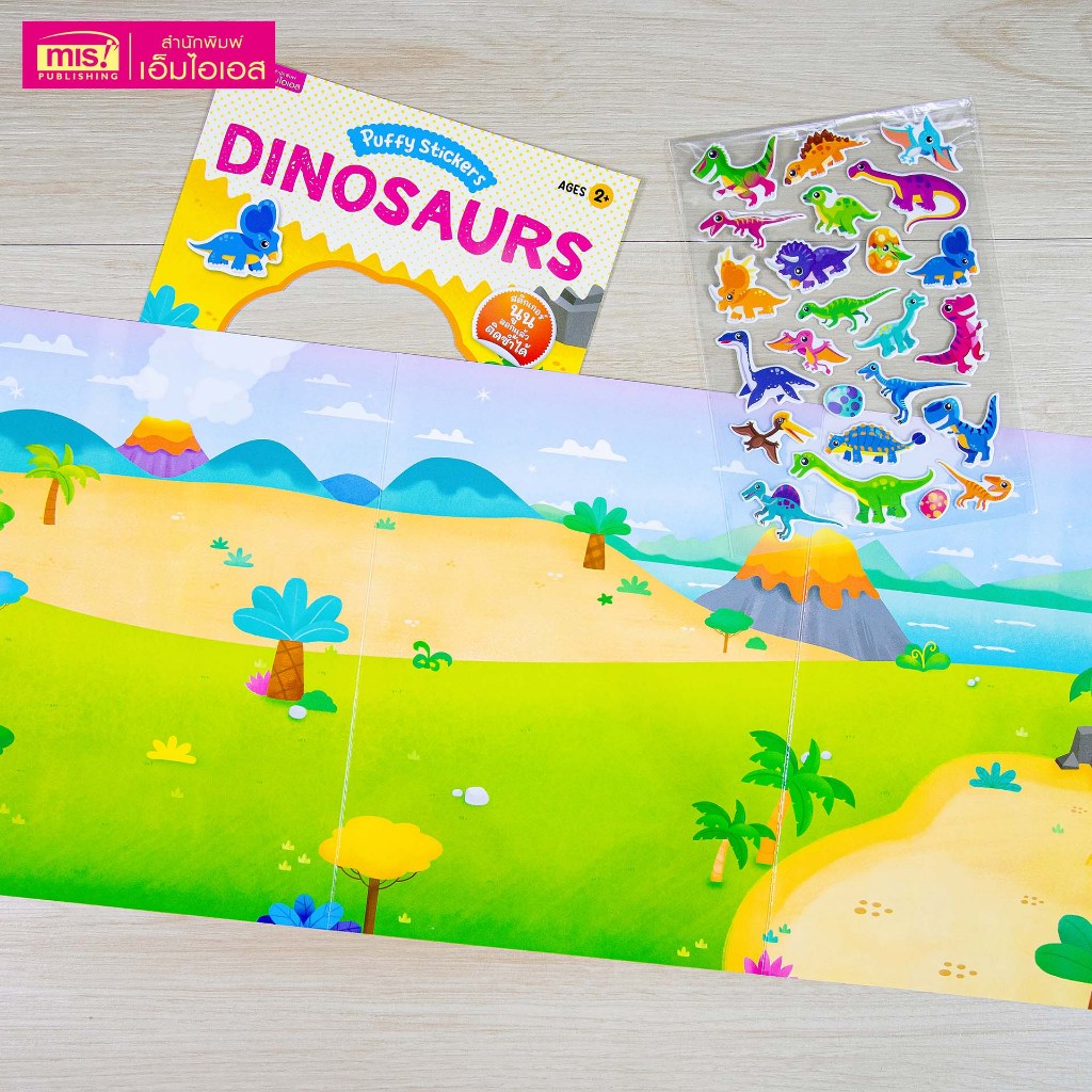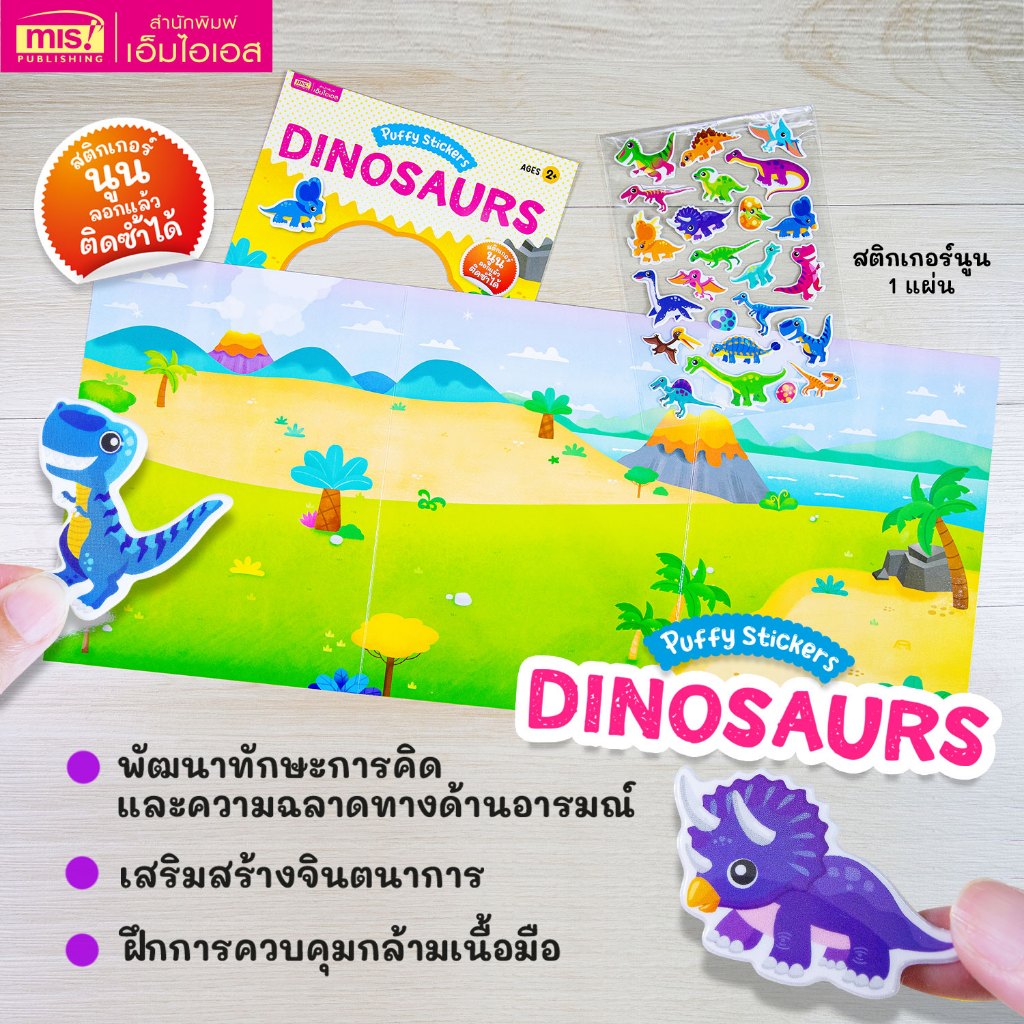 MISBOOK หนังสือแปะสติกเกอร์นูน Puffy Sticker : Dinosaurs เสริม IQ เรียนรู้คำศัพท์ภาษาอังกฤษ