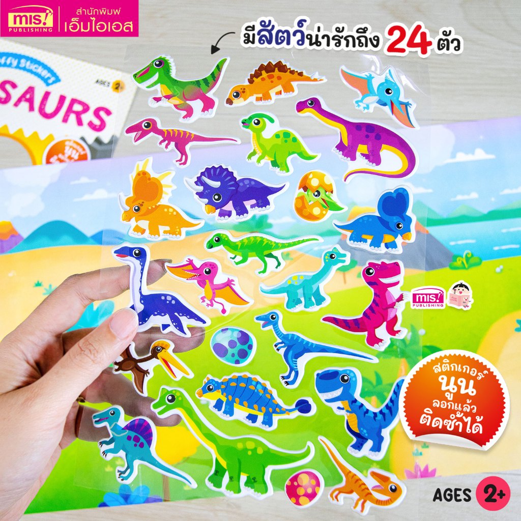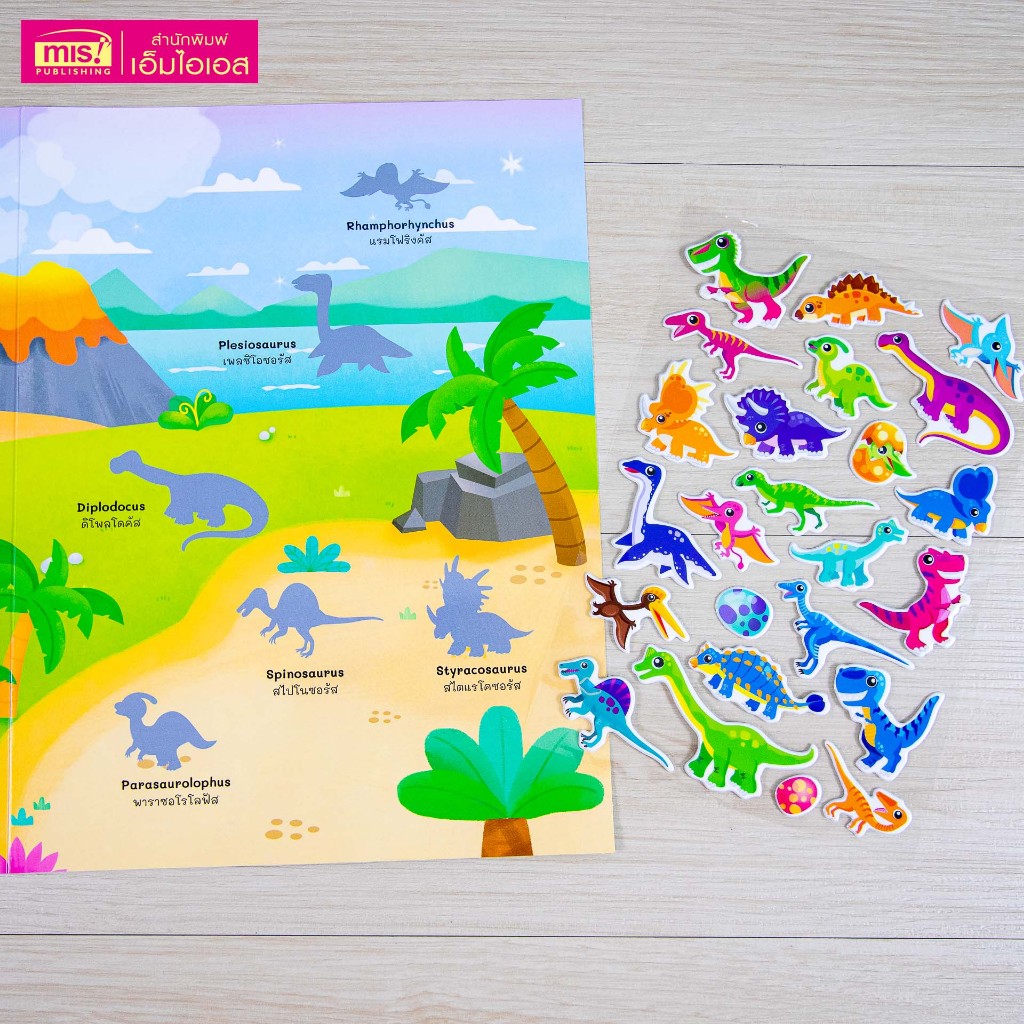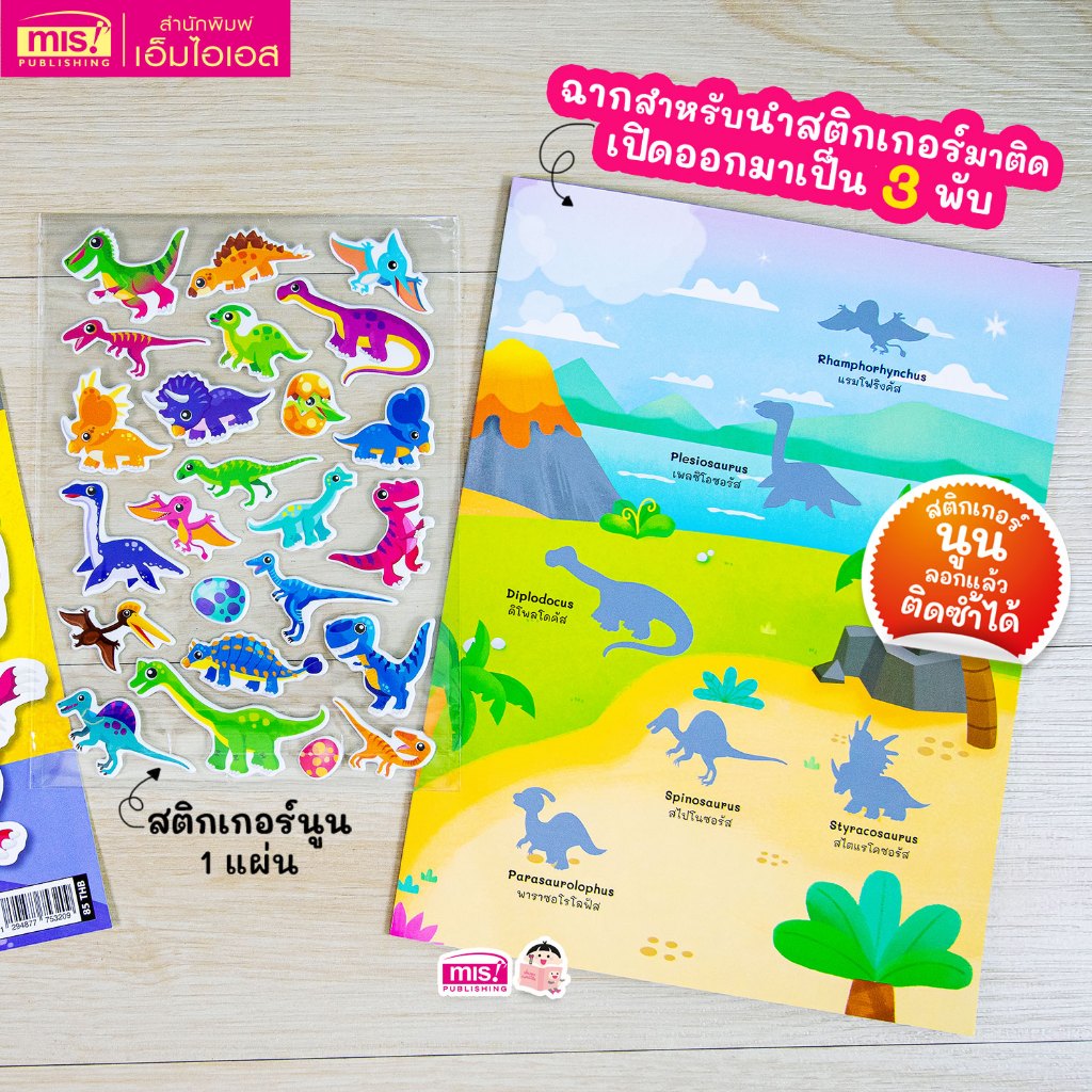 MISBOOK หนังสือแปะสติกเกอร์นูน Puffy Sticker : Dinosaurs เสริม IQ เรียนรู้คำศัพท์ภาษาอังกฤษ