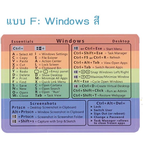 สติกเกอร์ทางลัดคีย์บอร์ด บนแป้นพิมพ์ Keyboard Shortcut Sticker สําหรับ PC Notebook Macbook แล็ปท็อป เดสก์ท็อป