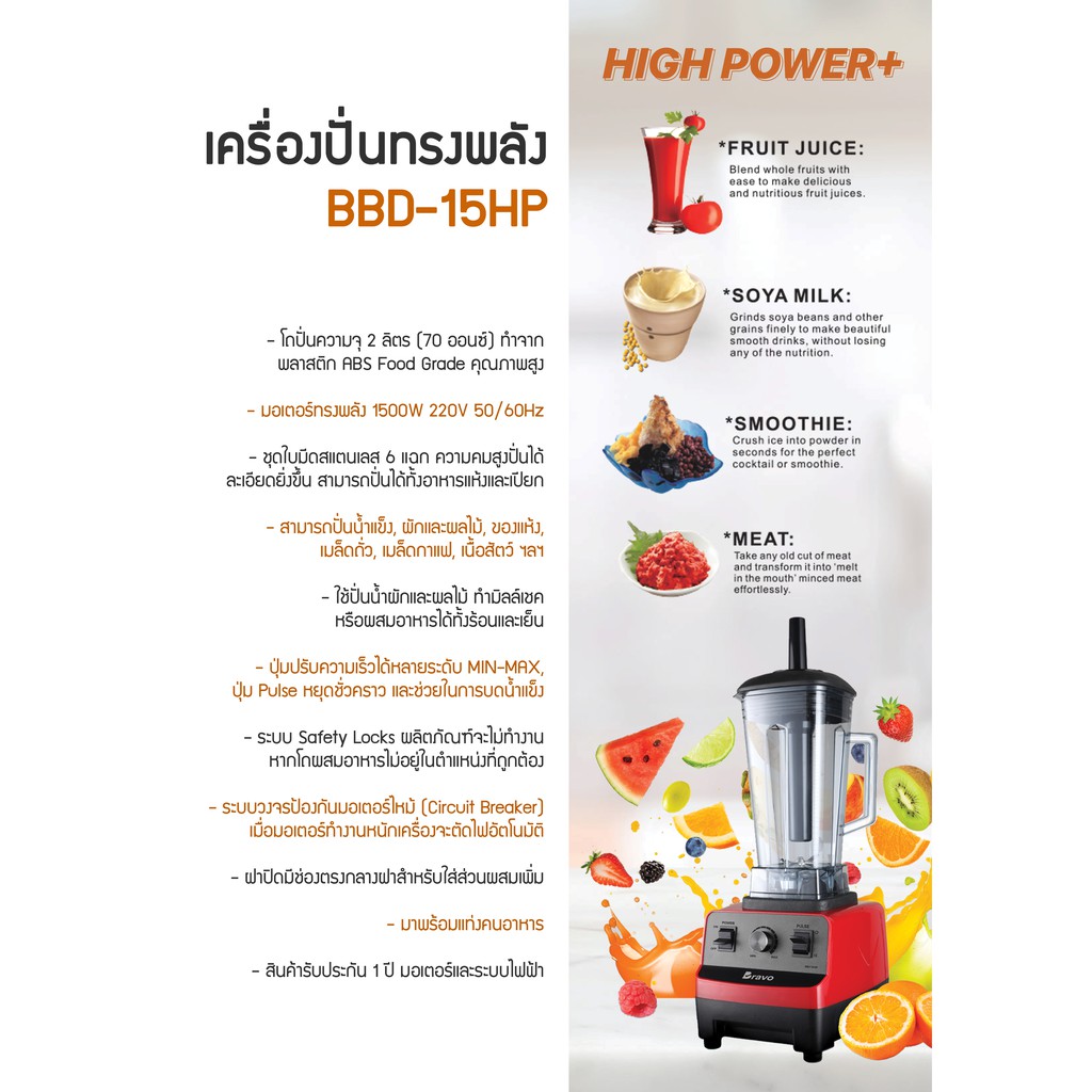 BRAVO เครื่องปั่นทรงพลัง 1500 วัตต์ BBD-15HP (2 ลิตร)