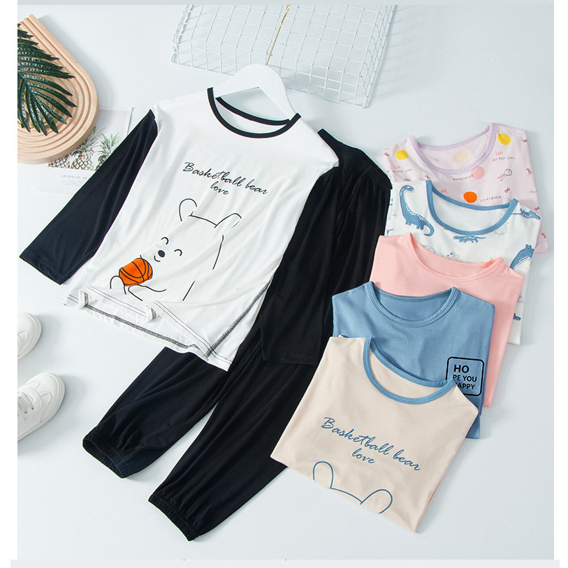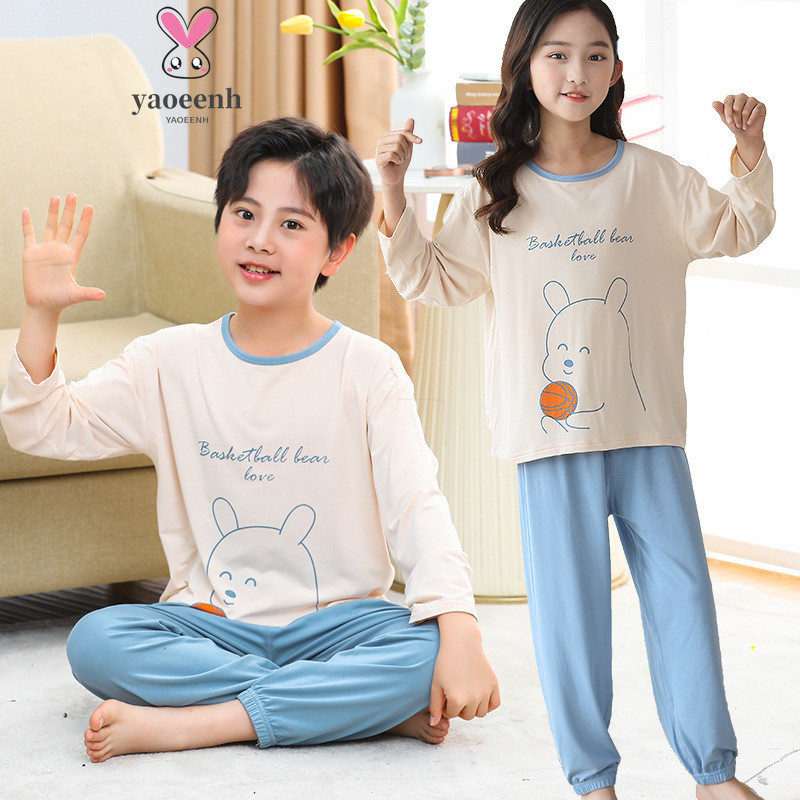 【YAOEENH】ชุดนอน กางเกงขายาว ลายการ์ตูน สองชิ้น แฟชั่นฤดูร้อน สําหรับเด็กผู้ชาย และผู้หญิง ขนาดกลาง 100-180 ซม.