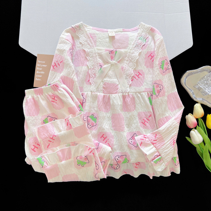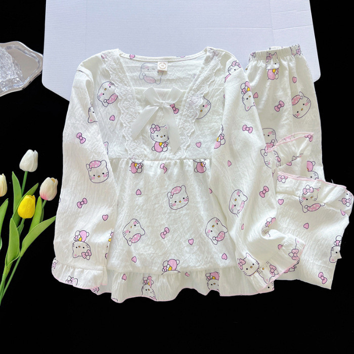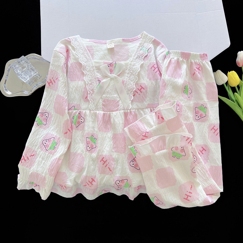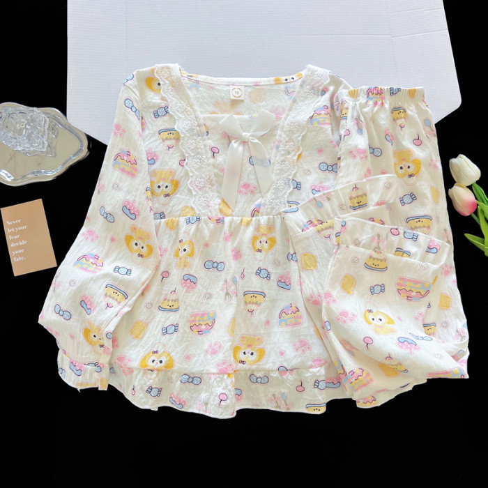 【YAOEENH】ชุดนอนแขนยาวสำหรับเด็กอายุ 105-170ซม. ดีไซน์แบบเมฆจากผ้าฝ้ายและลูกไม้ สไตล์ฤดูใบไม้ผลิและใบไม้ร่วง