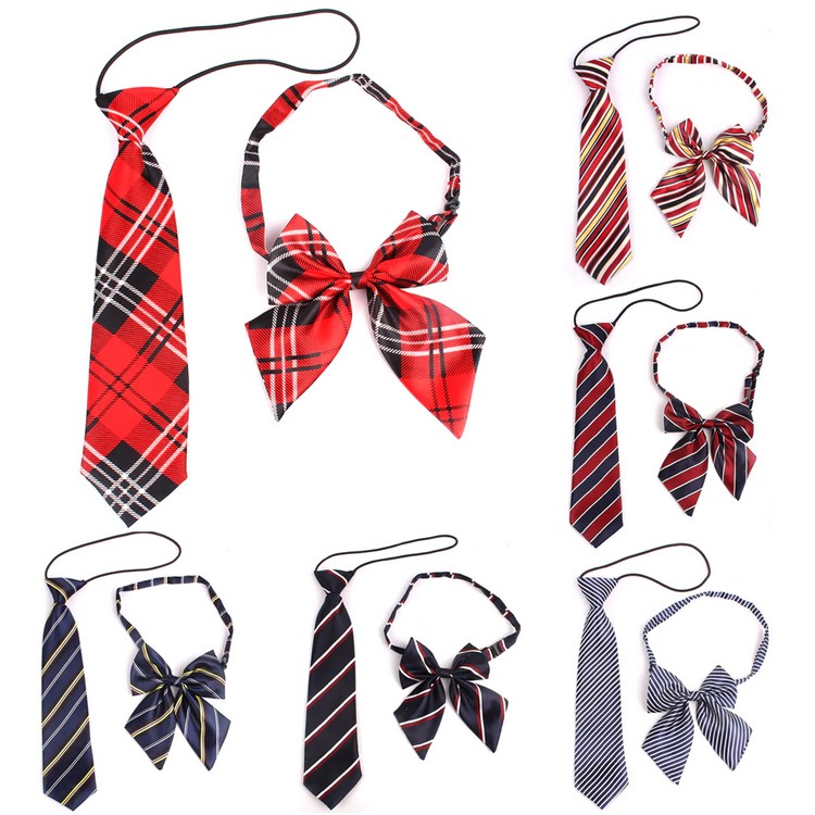 เนคไท โบว์ สำหรับเด็กโต ผู้หญิง Rubber String Necktie For Girls and Boys Polyester Plaid Neck Tie for Children Suits