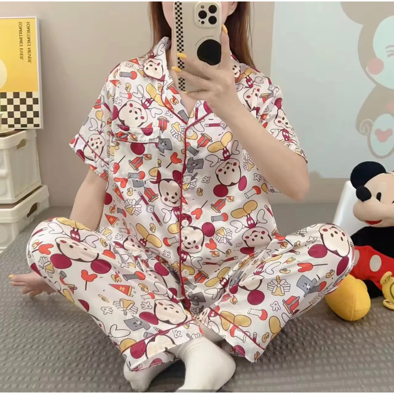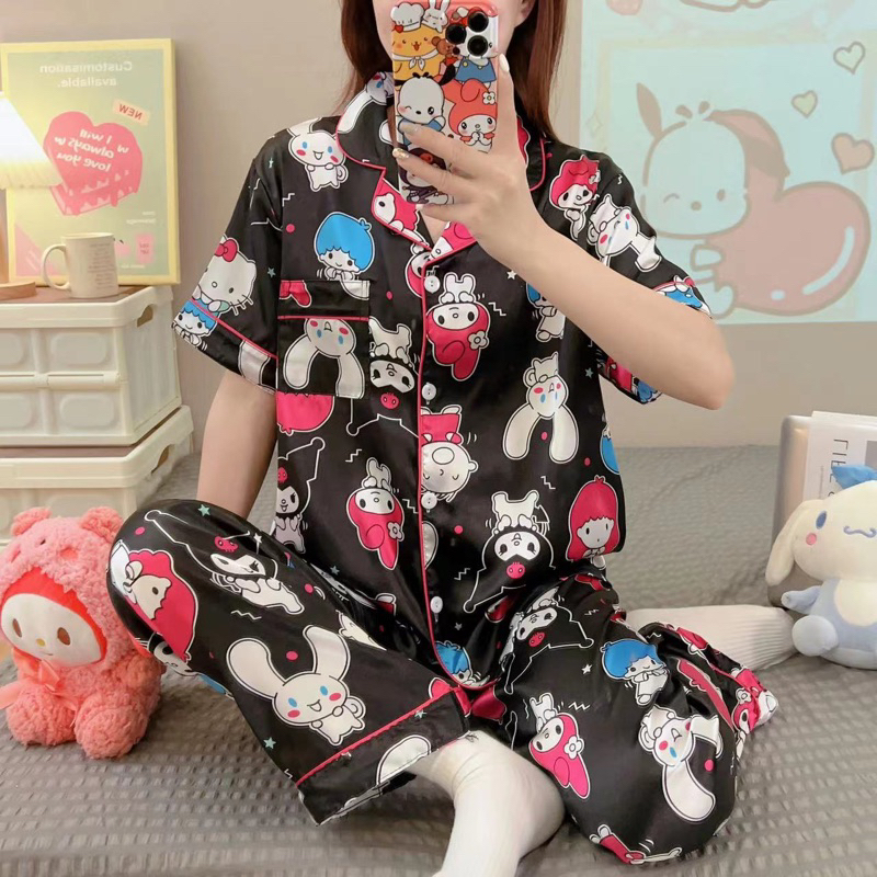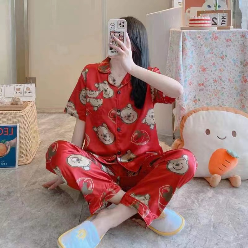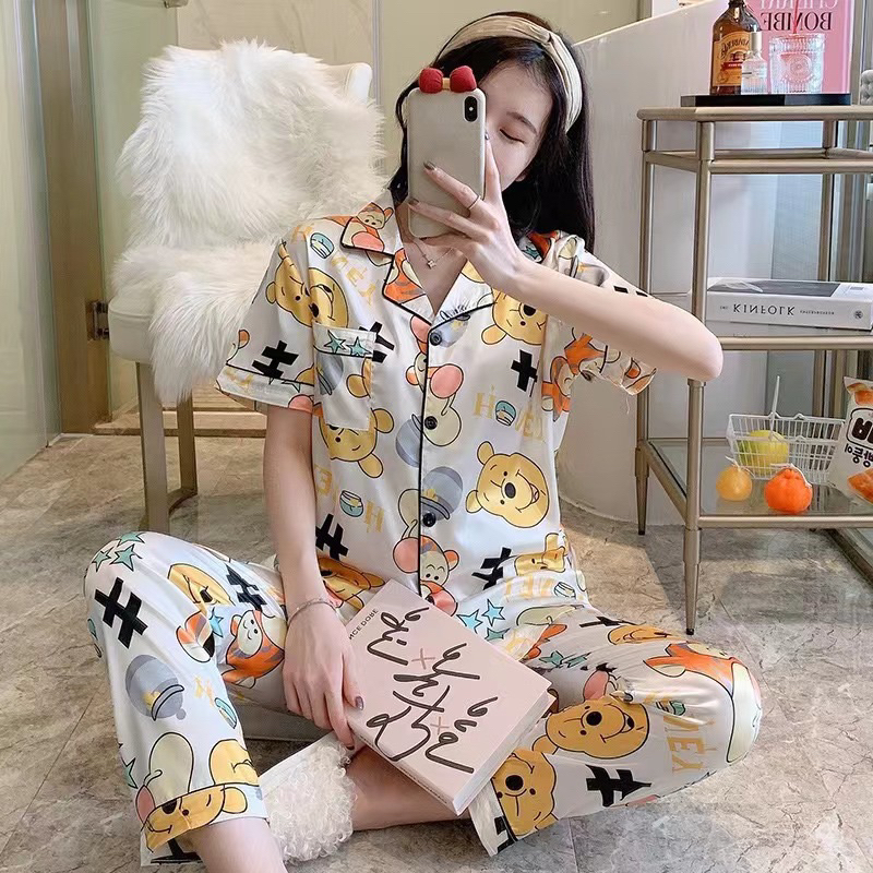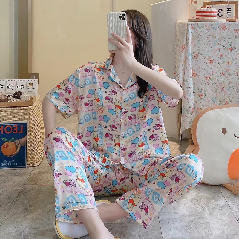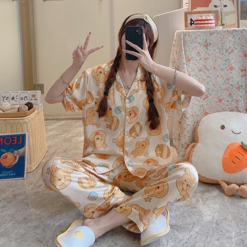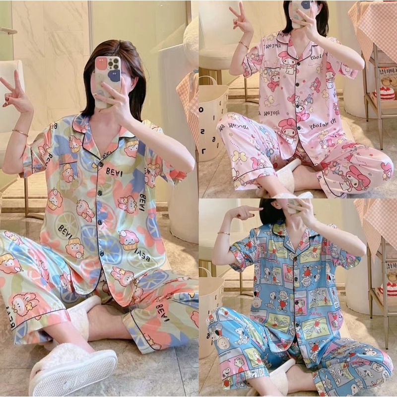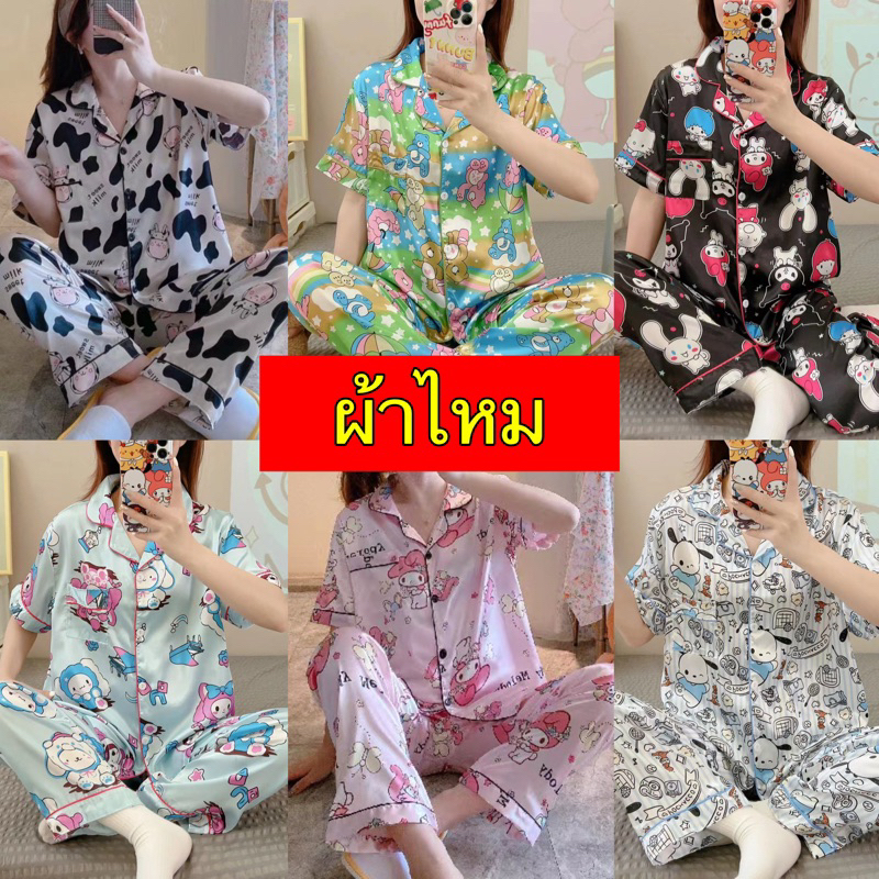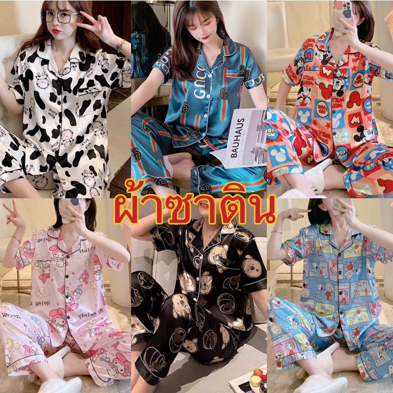 ชุดนอนผ้าซาติน คอปก ผ้าลื่น ใส่สบาย 2ชิ้น เสื้อแขนสั้น+กางเกงขายาว ไซส์xxl ลายน่ารักๆ มีลายเยอะๆให้เลือก