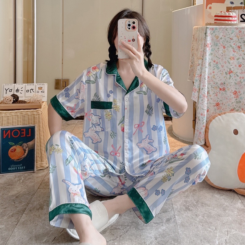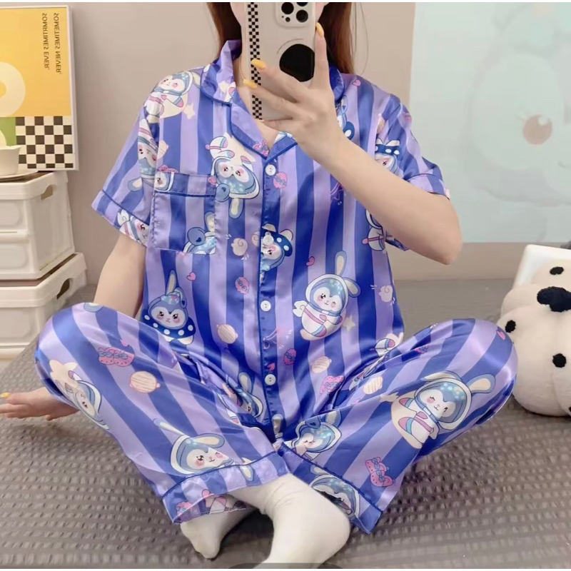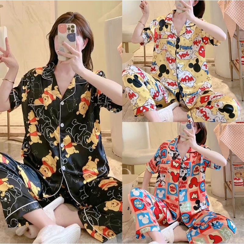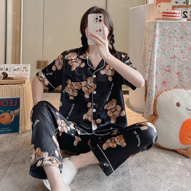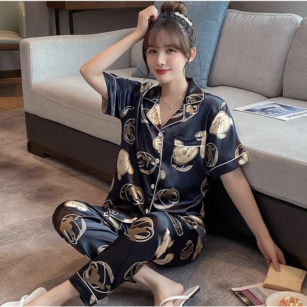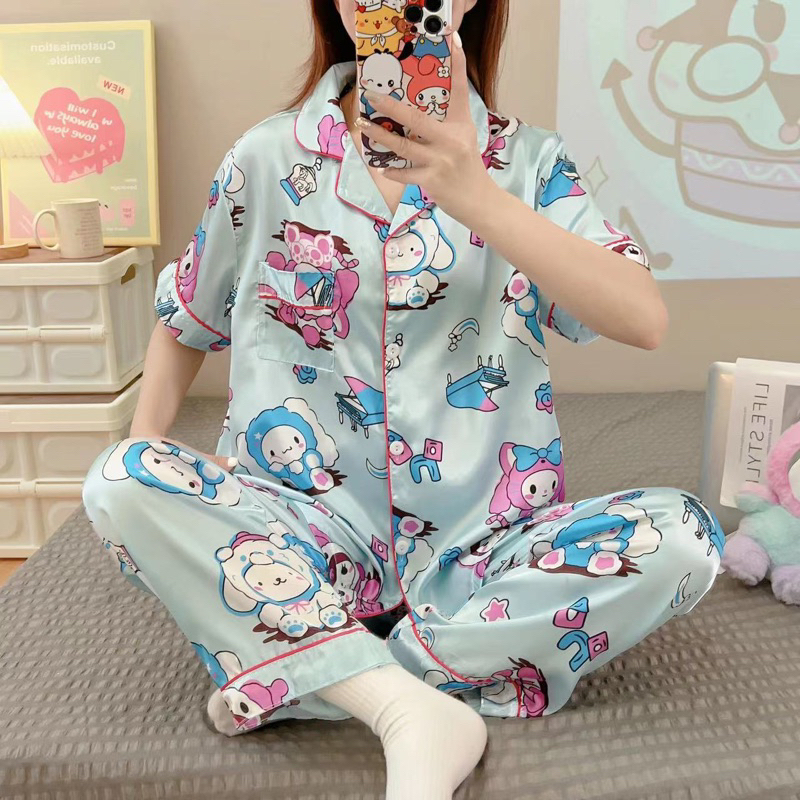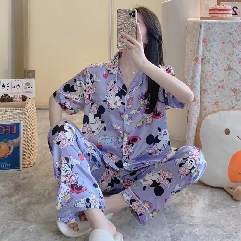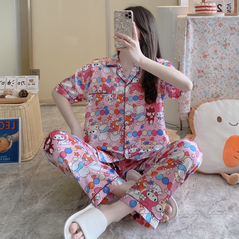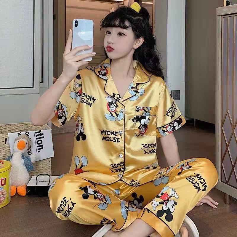 ชุดนอนผ้าซาติน คอปก ผ้าลื่น ใส่สบาย 2ชิ้น เสื้อแขนสั้น+กางเกงขายาว ไซส์xxl ลายน่ารักๆ มีลายเยอะๆให้เลือก