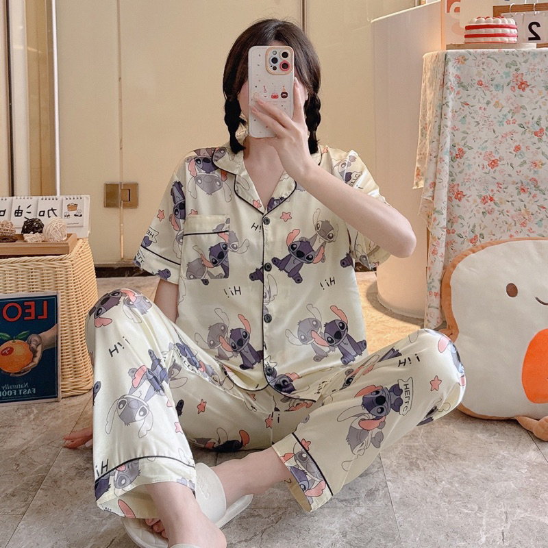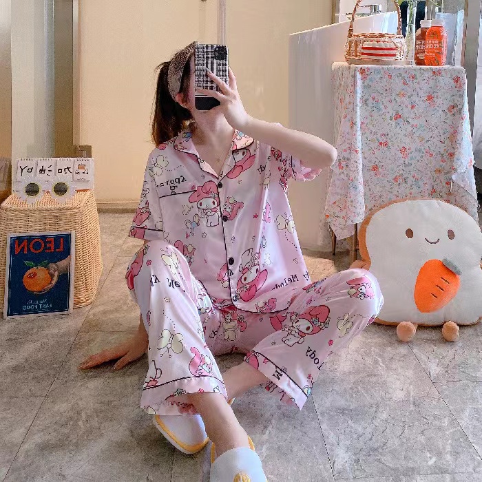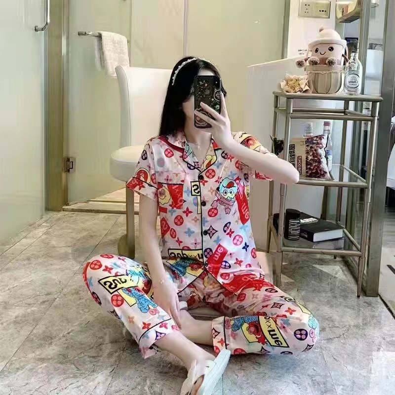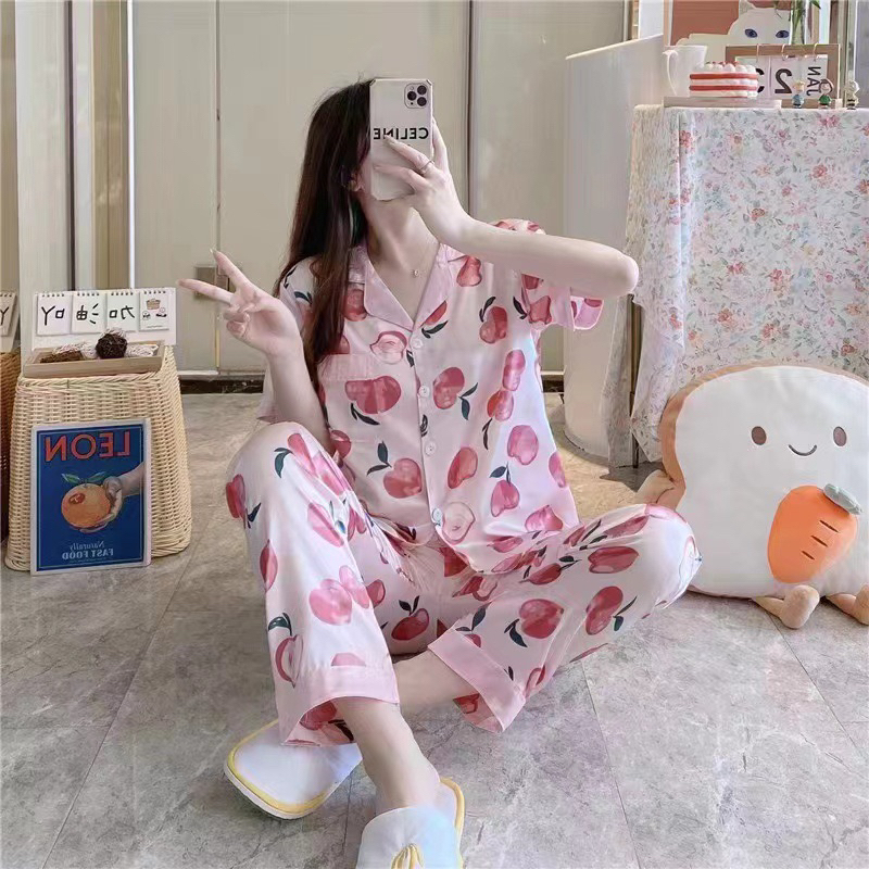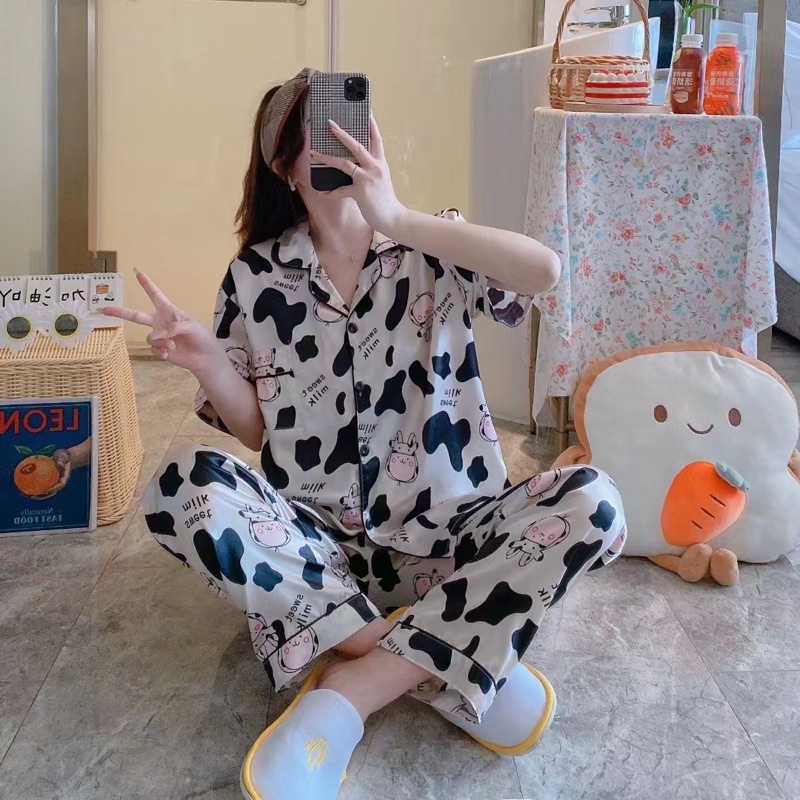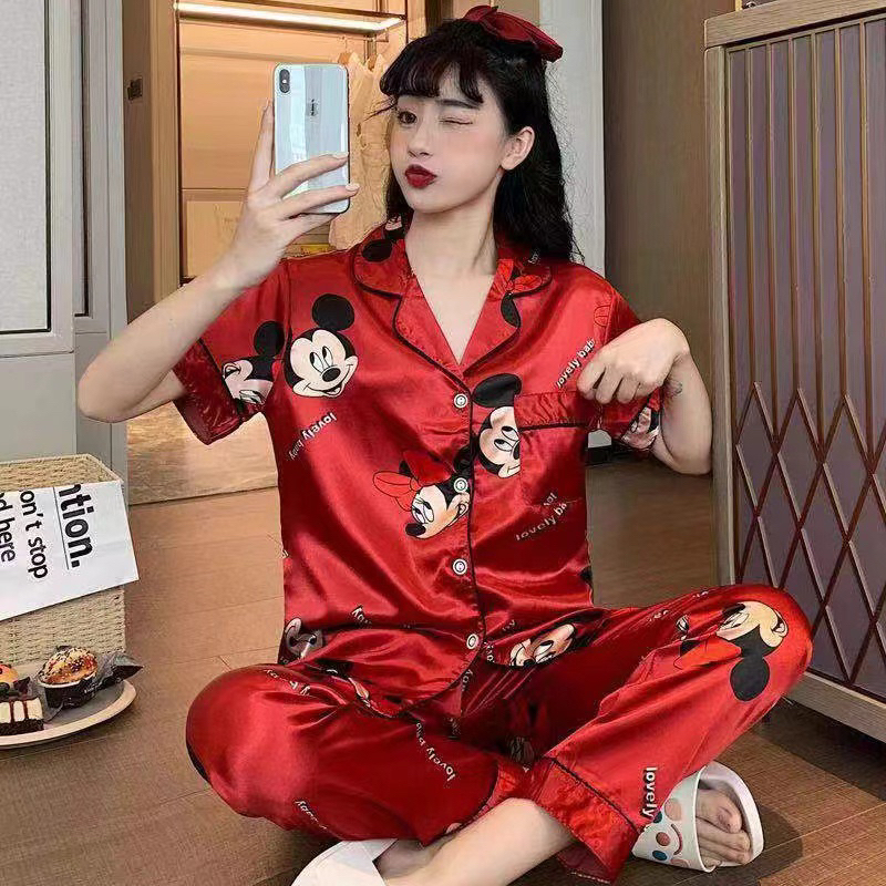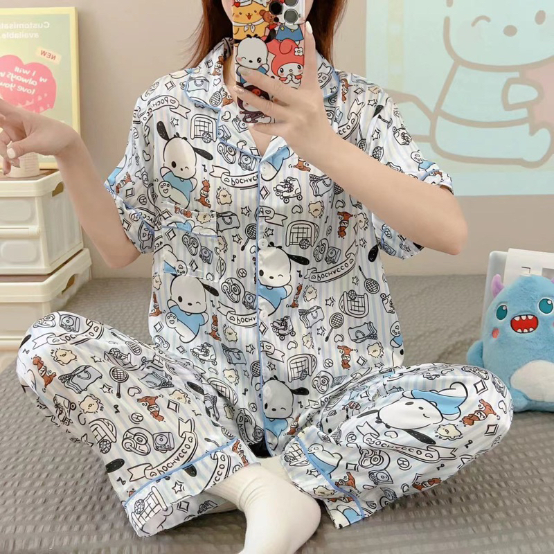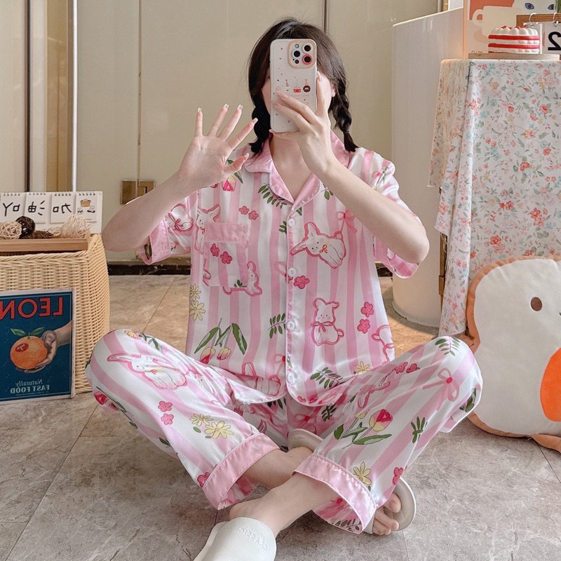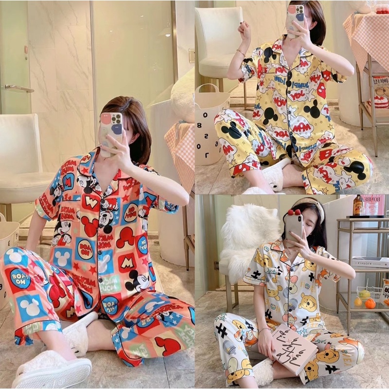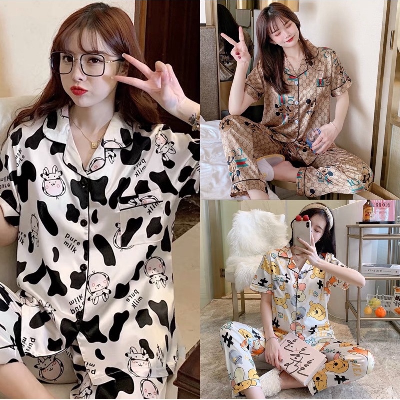 ชุดนอนผ้าซาติน คอปก ผ้าลื่น ใส่สบาย 2ชิ้น เสื้อแขนสั้น+กางเกงขายาว ไซส์xxl ลายน่ารักๆ มีลายเยอะๆให้เลือก