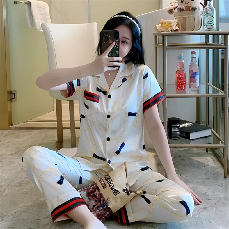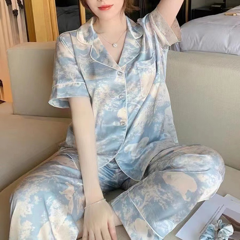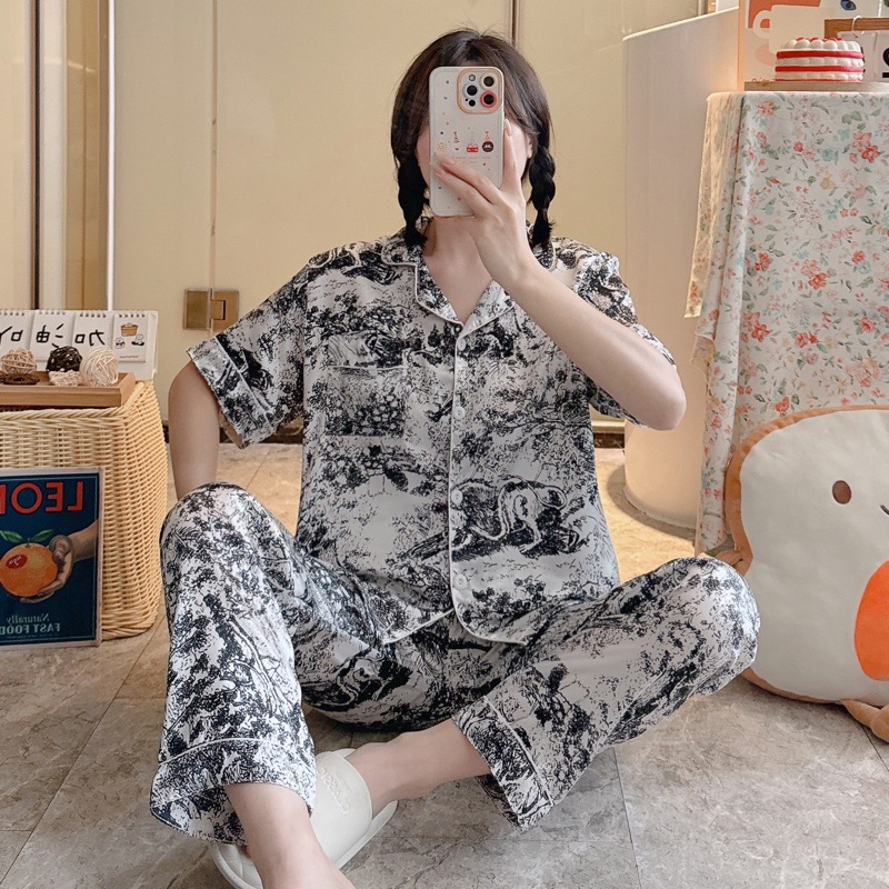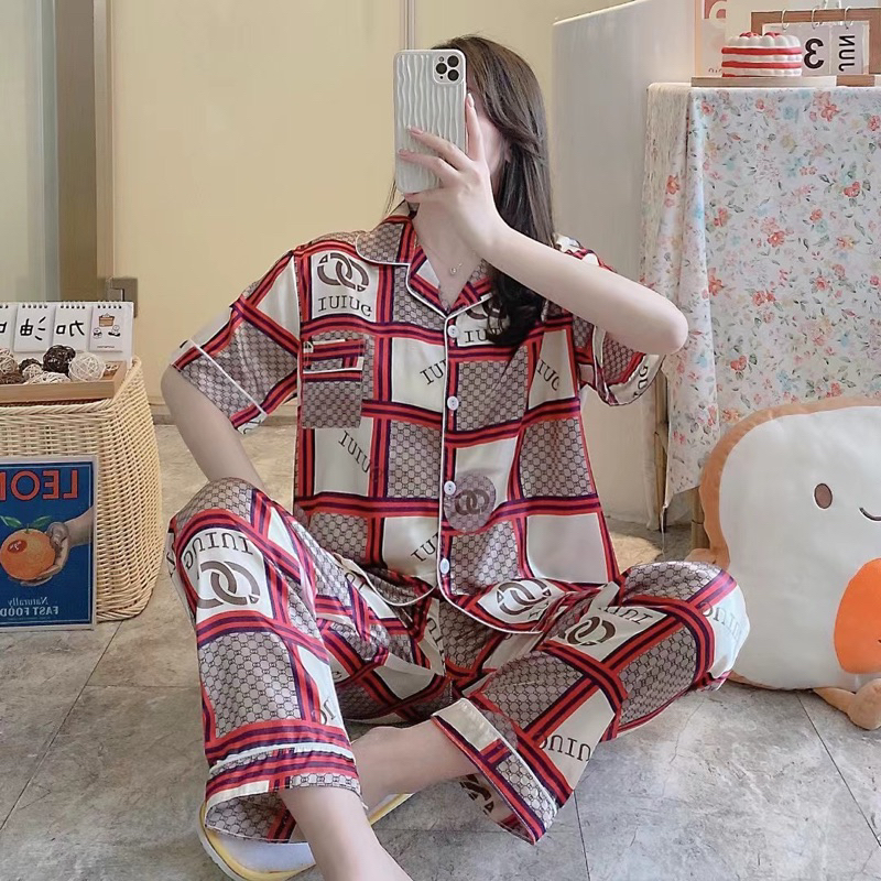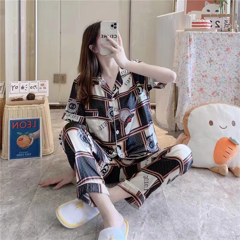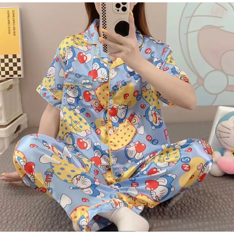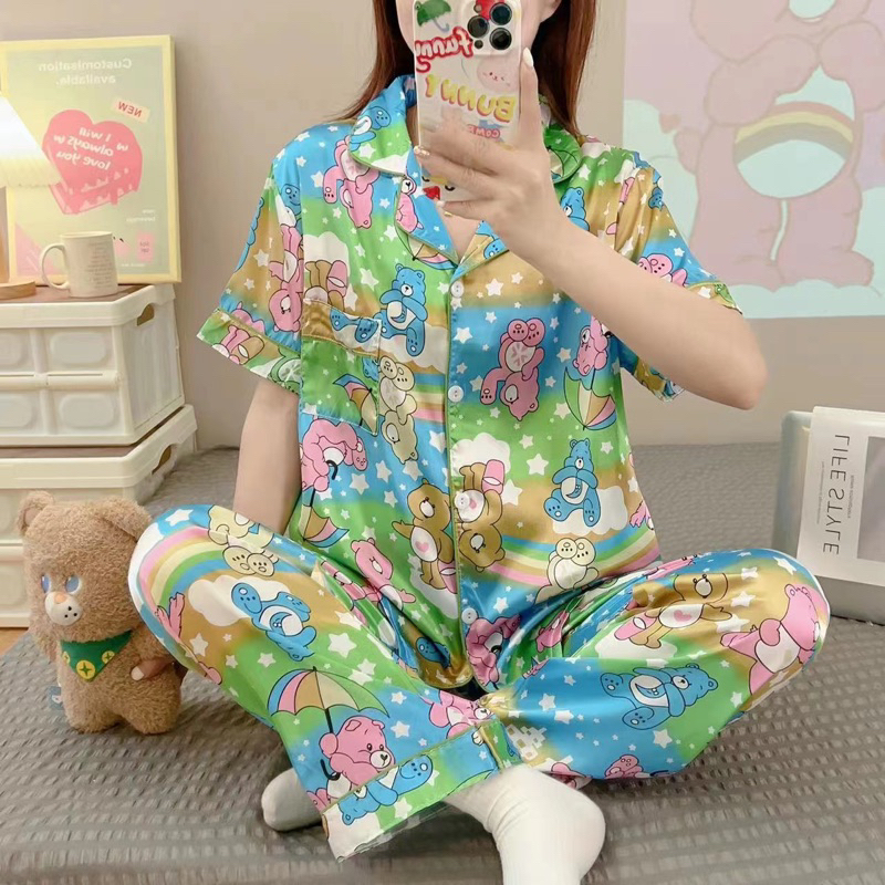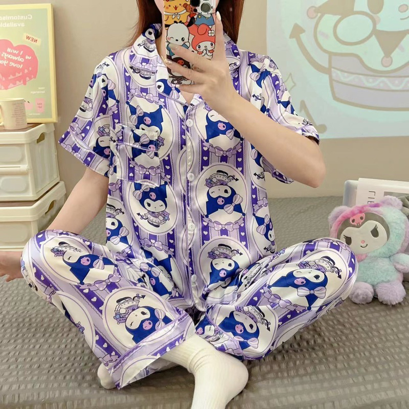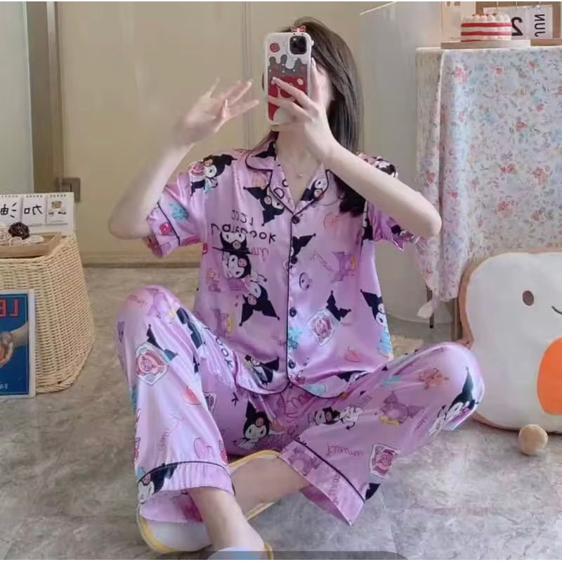 ชุดนอนผ้าซาติน คอปก ผ้าลื่น ใส่สบาย 2ชิ้น เสื้อแขนสั้น+กางเกงขายาว ไซส์xxl ลายน่ารักๆ มีลายเยอะๆให้เลือก