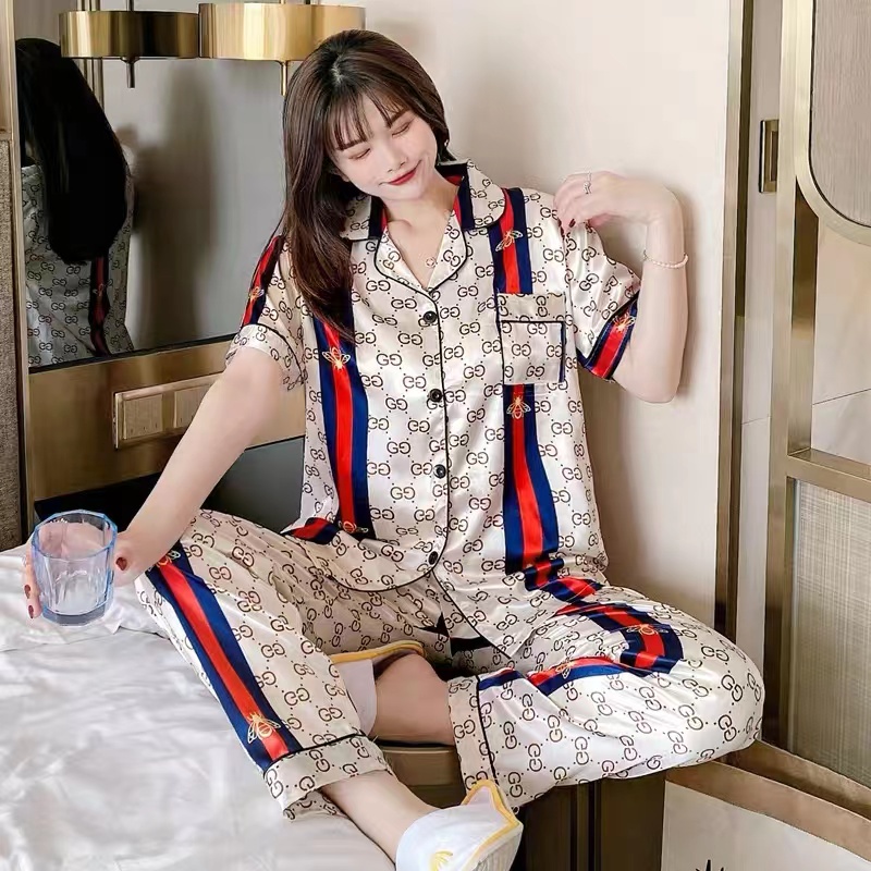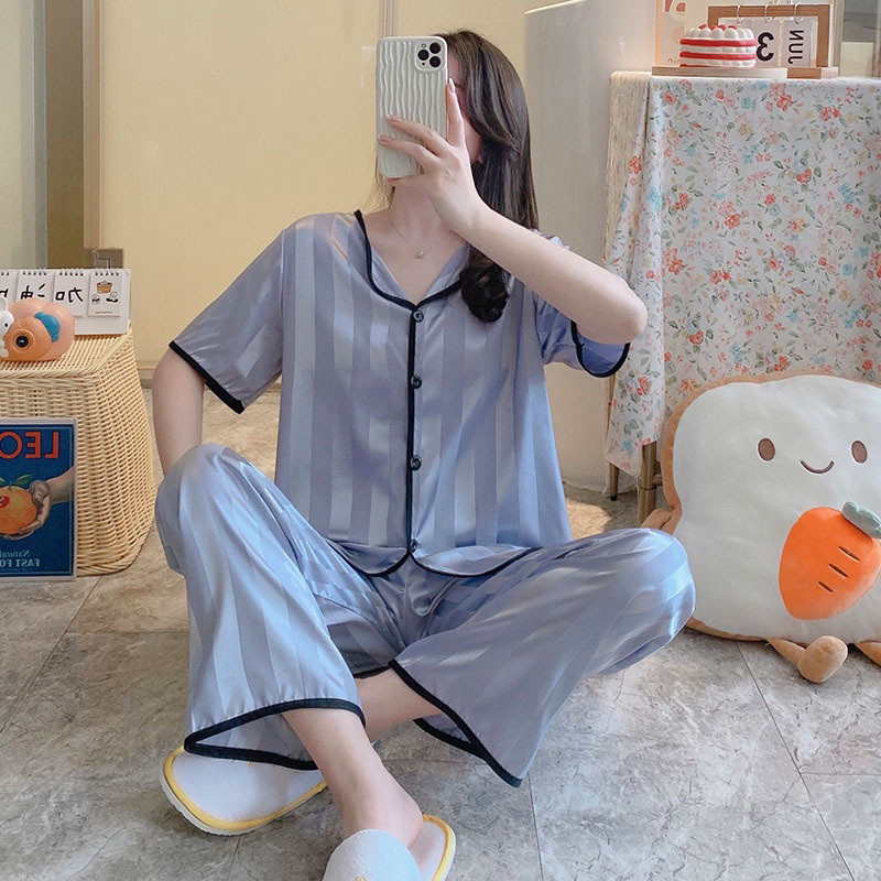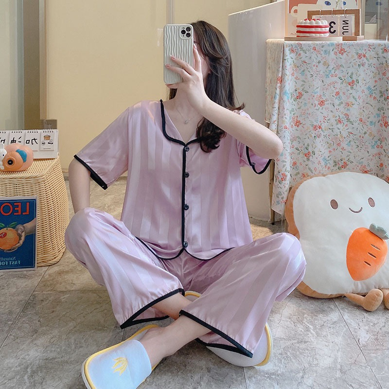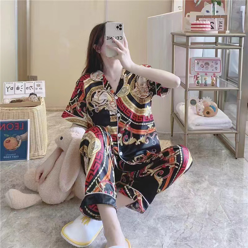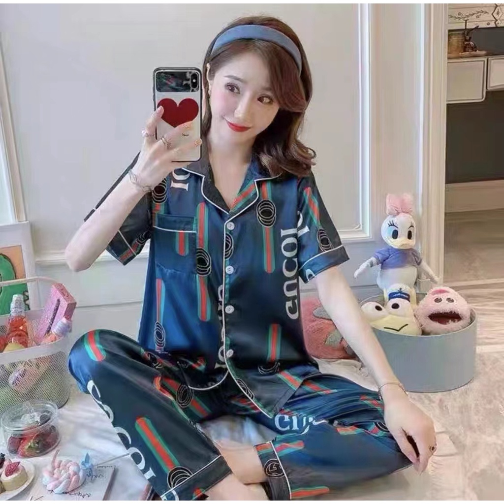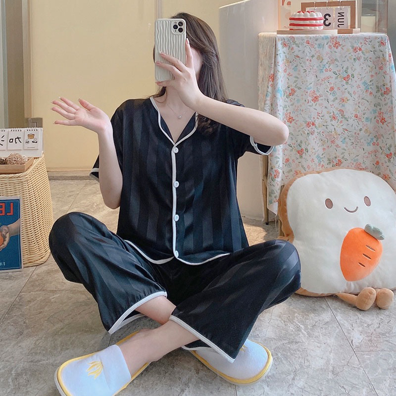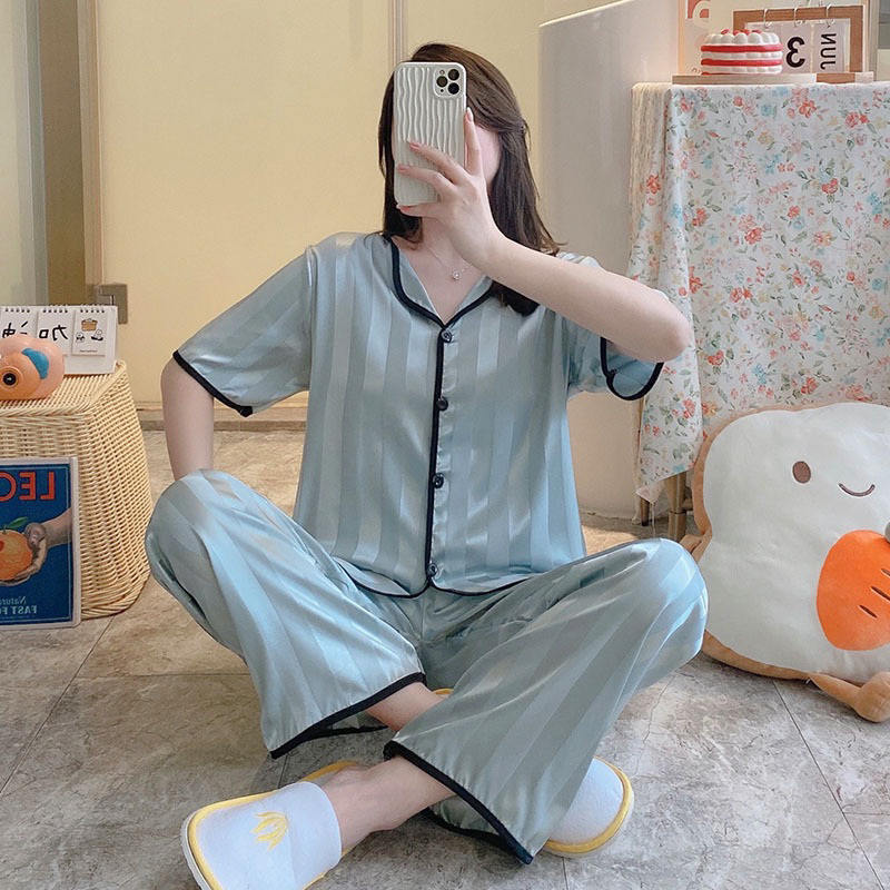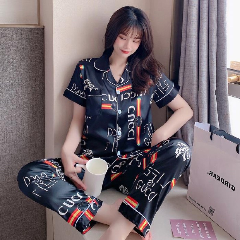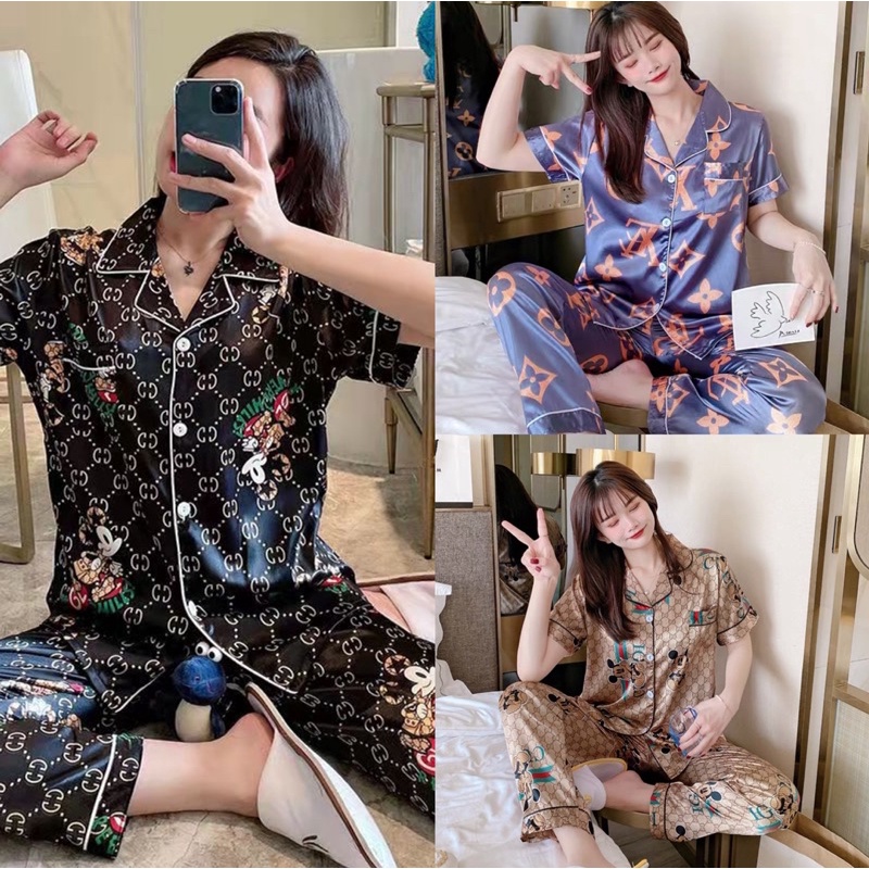 ชุดนอนผ้าซาติน คอปก ผ้าลื่น ใส่สบาย 2ชิ้น เสื้อแขนสั้น+กางเกงขายาว ไซส์xxl ลายน่ารักๆ มีลายเยอะๆให้เลือก