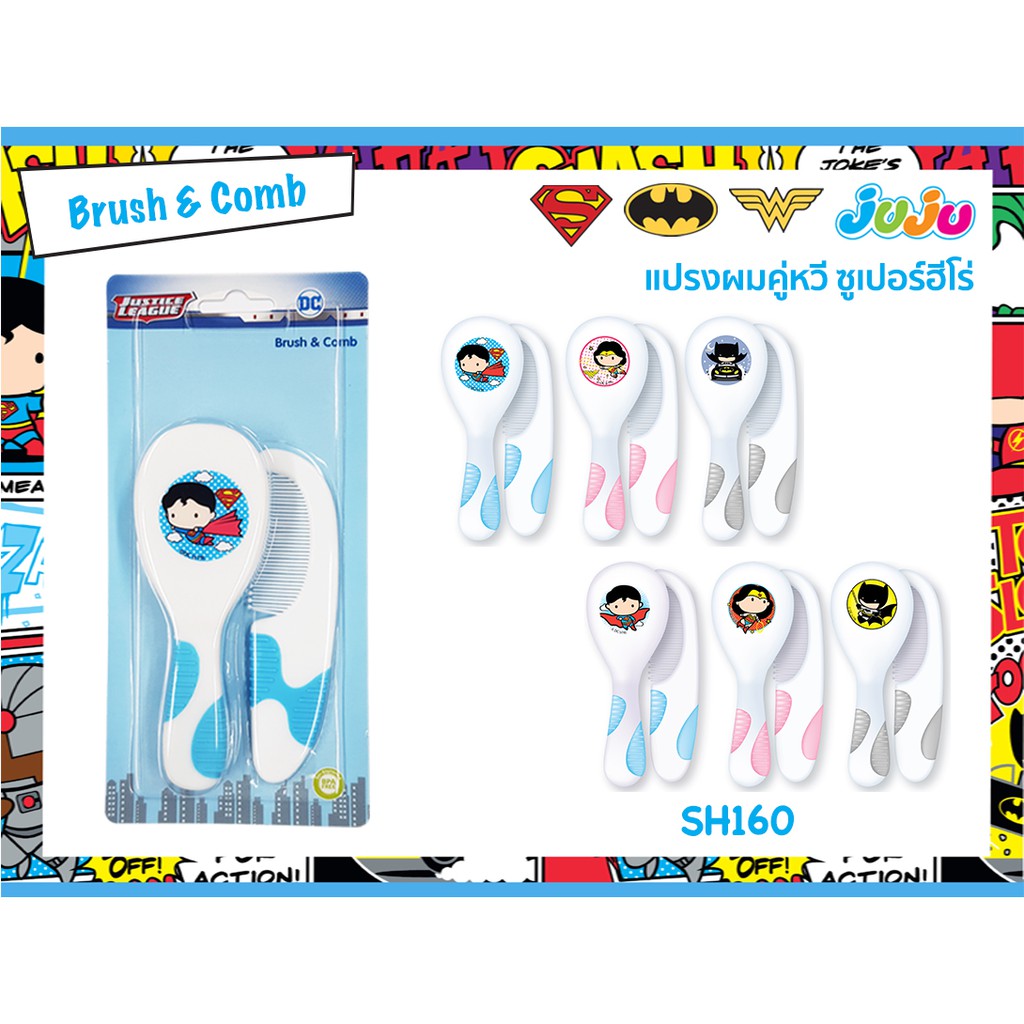 🏅ลิขสิทธิ์แท้🎁JuJu SH160 แปรงผมเด็กเล็ก ขนแปรงนิ่มตามมาตรฐาน แถมหวี ซูเปอร์ฮีโร่