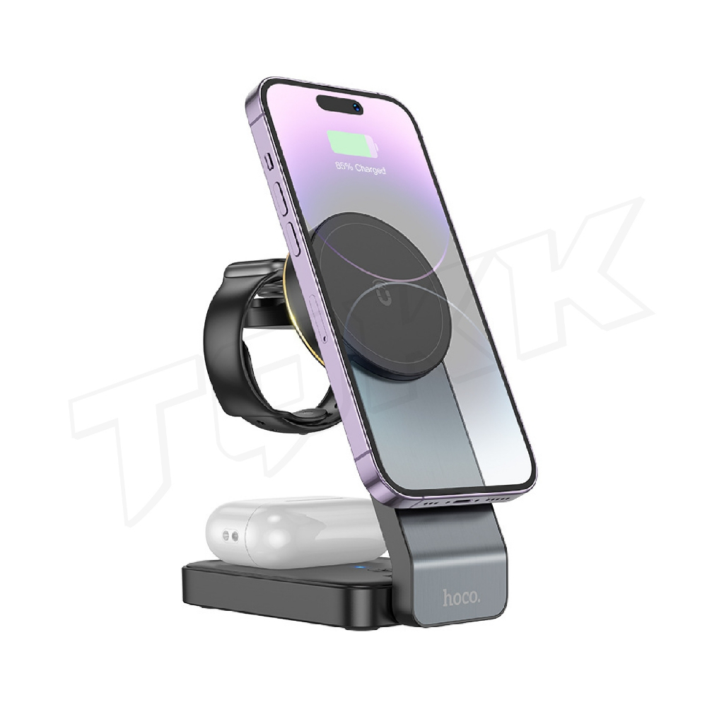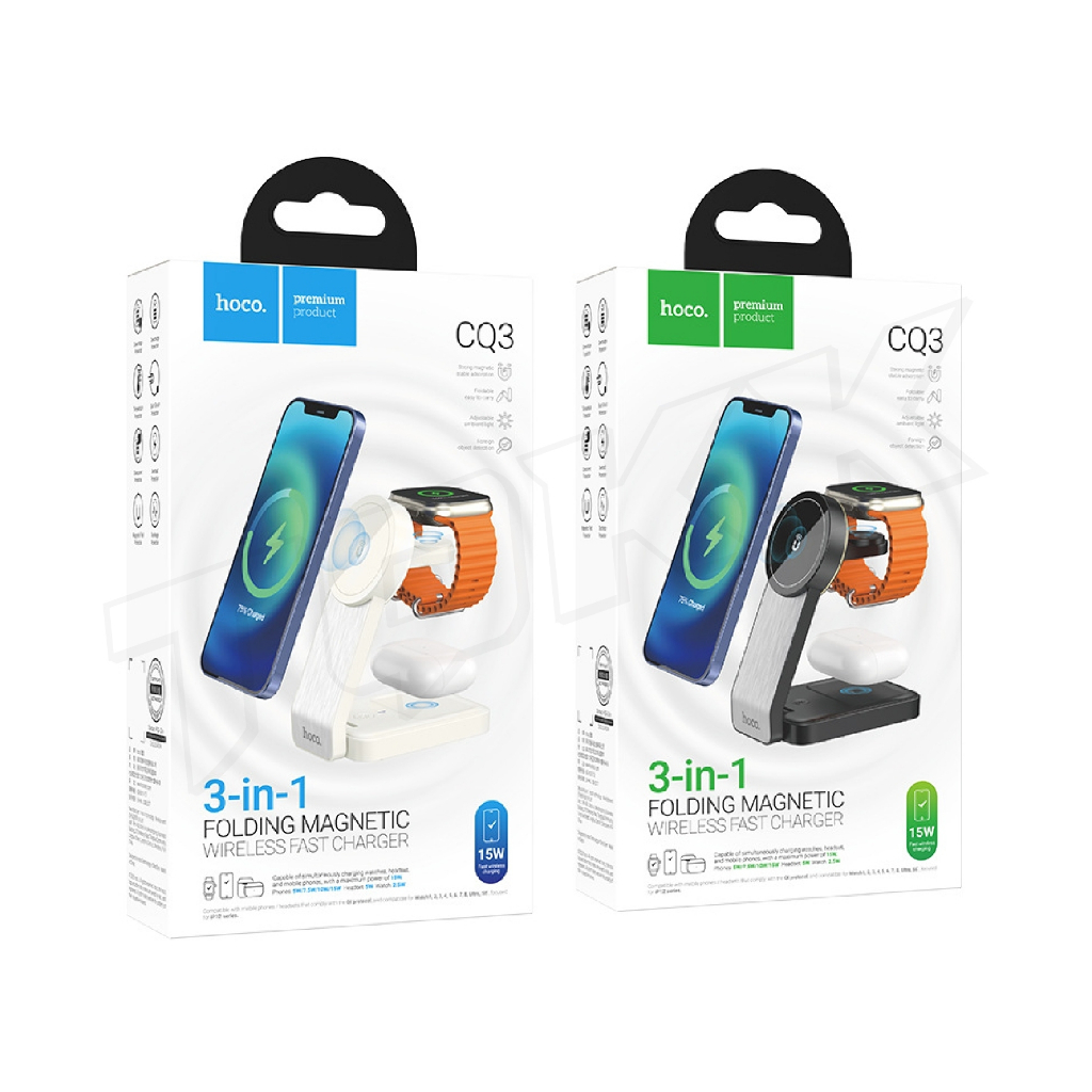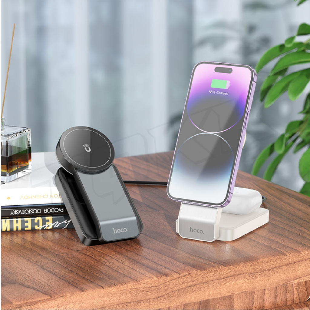Hoco CQ3 แท่นชาร์จไร้สาย 3in1 magnetich wireless fast charger 3in1 15W ใหม่ล่าสุด ที่ชาร์จตั้งโต๊ะ