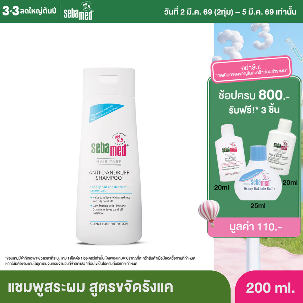 SEBAMED ANTI-DANDRUFF SHAMPOO PH 5.5 (200ML) แชมพูสระผม สูตรขจัดรังแค (200มล) ซีบาเมด แอนตี้-แด นดรัฟ แชมพู